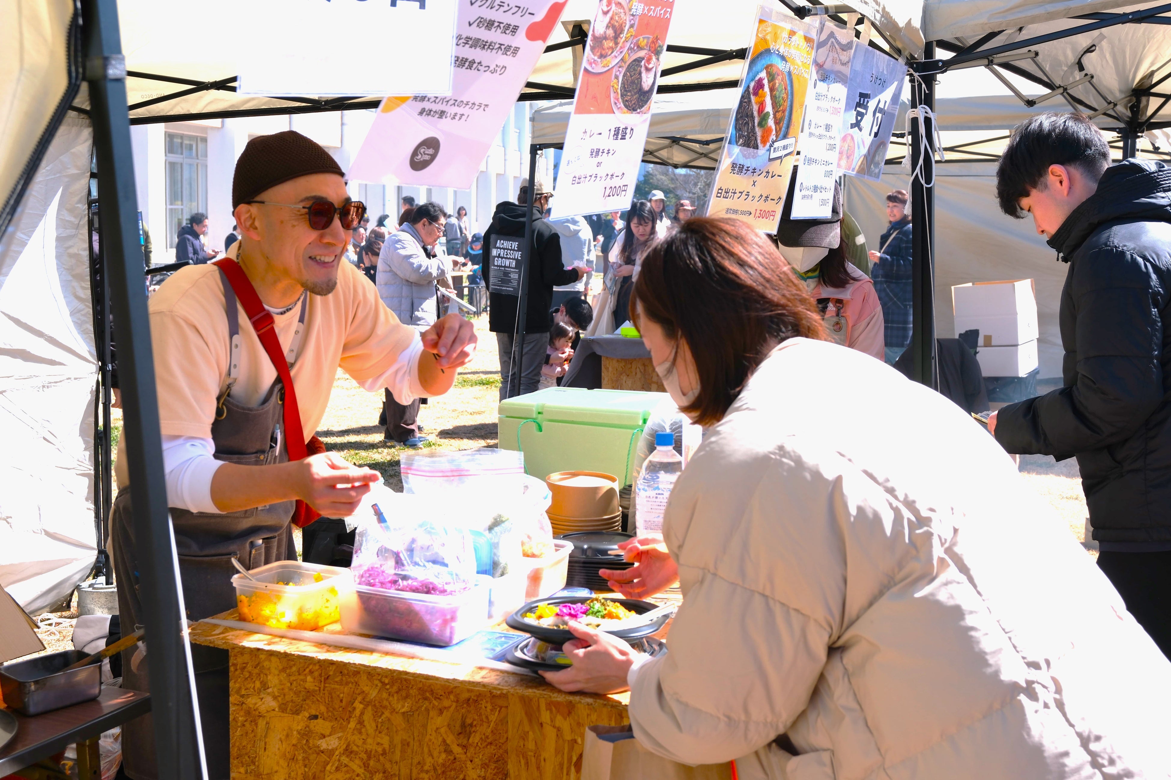 自家製BBQソースを絡めながら炭火で焼き上げたスペアリブ、創作スパイスヌードル、米粉を使ったグルテンフリーのフライドポテト、地域の素材を使用したクラフトビールなど、美味しいグルメがずらり。大熊町のネクサスファームのいちごを使用した『ほわいとぱりろーる』など、本イベント限定のコラボ商品も販売されました。