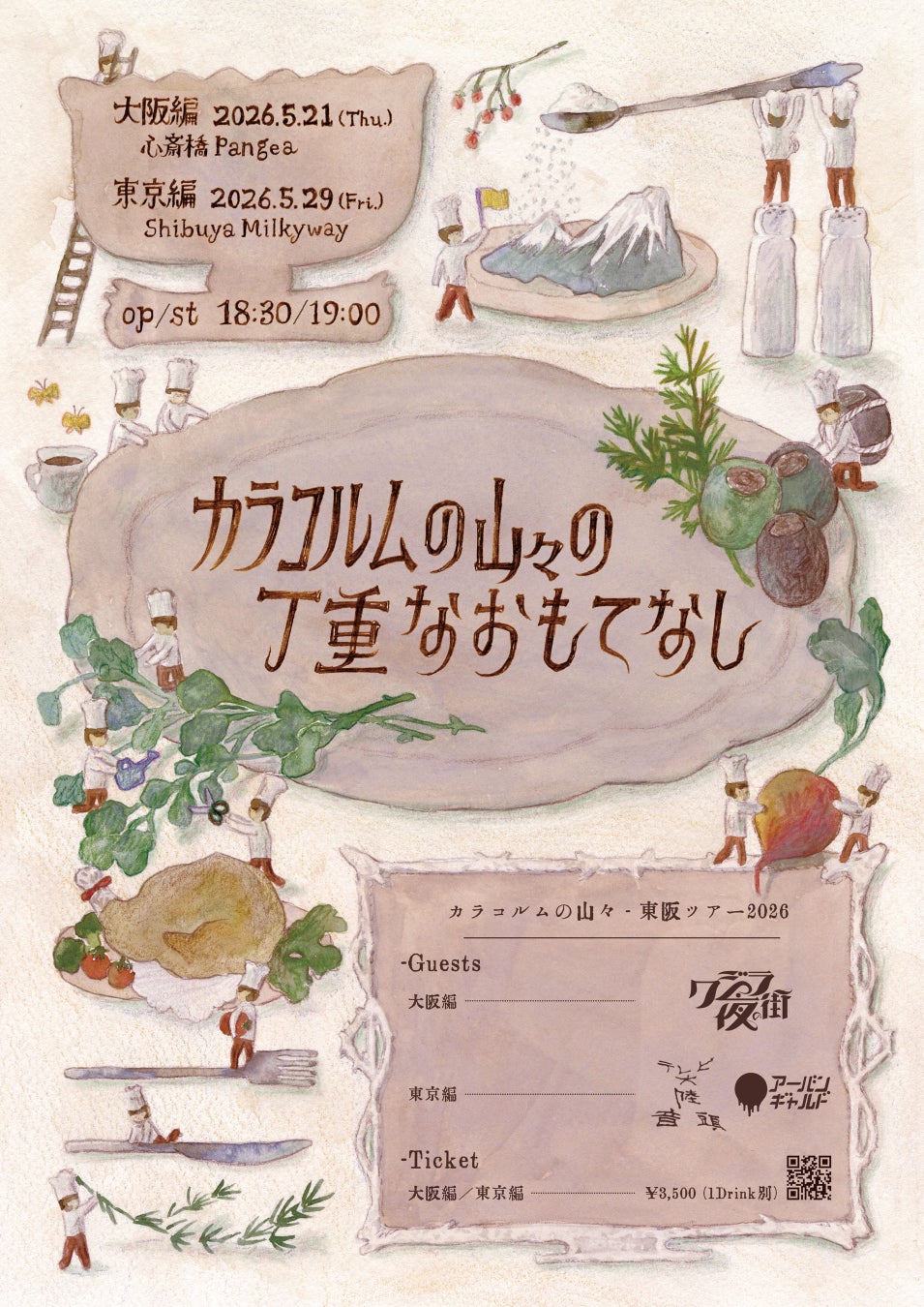 東京発キネマポップバンド、カラコルムの山々の対バンツアー『カラコルムの山々の丁重なおもてなし』の最終ラインナップが発表された。