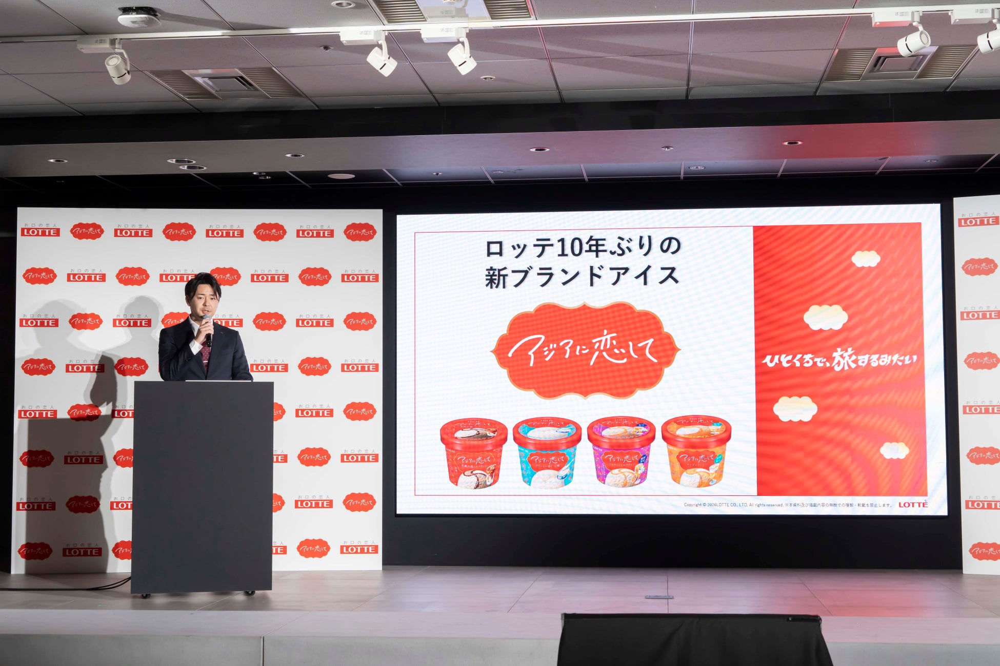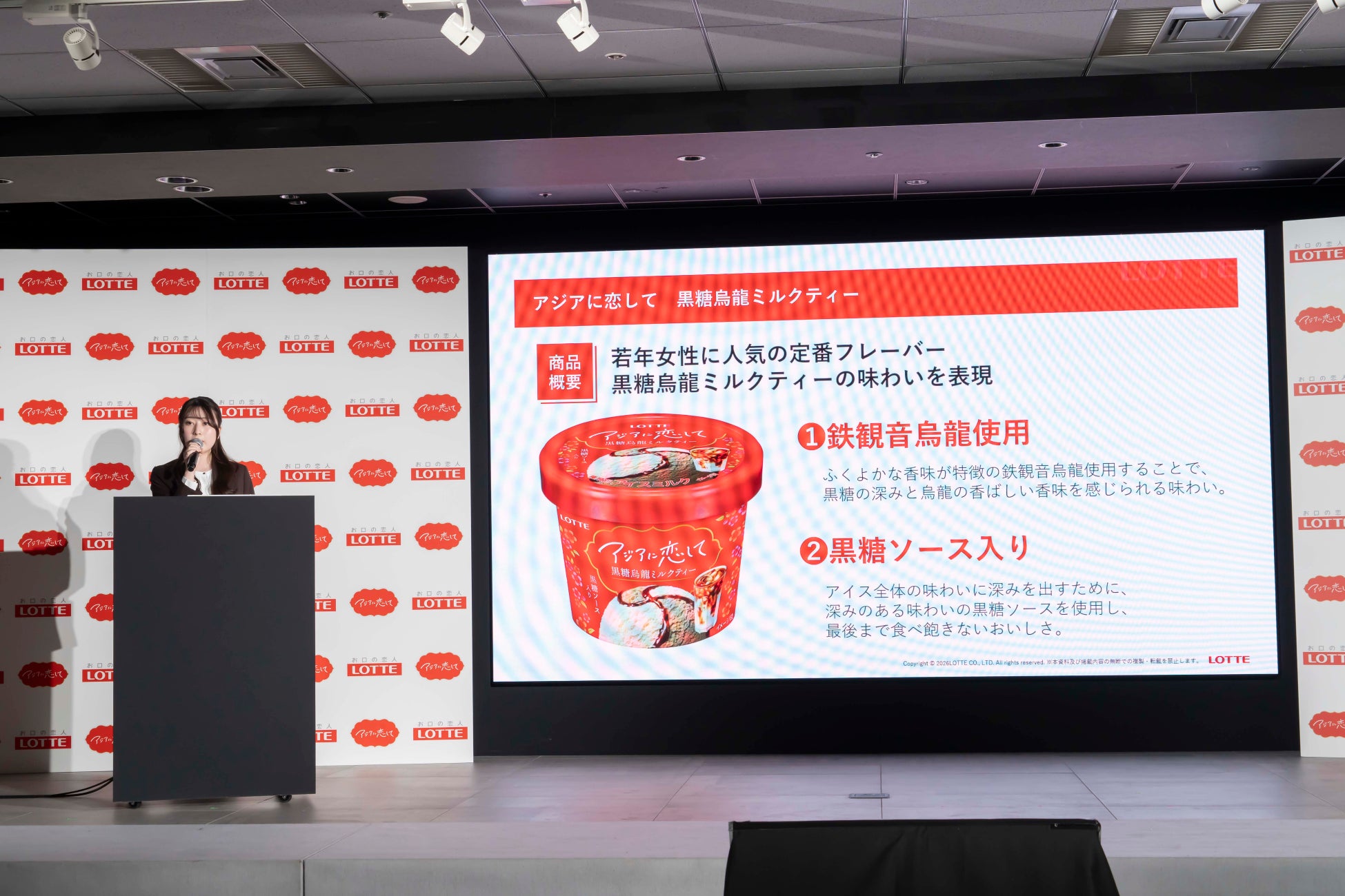 はじめに、株式会社ロッテ マーケティング本部 新商品開発部 西山侃輔より、新ブランド「アジアに恋して」のコンセプトや開発秘話、今後の戦略についてプレゼンテーションが行われました。