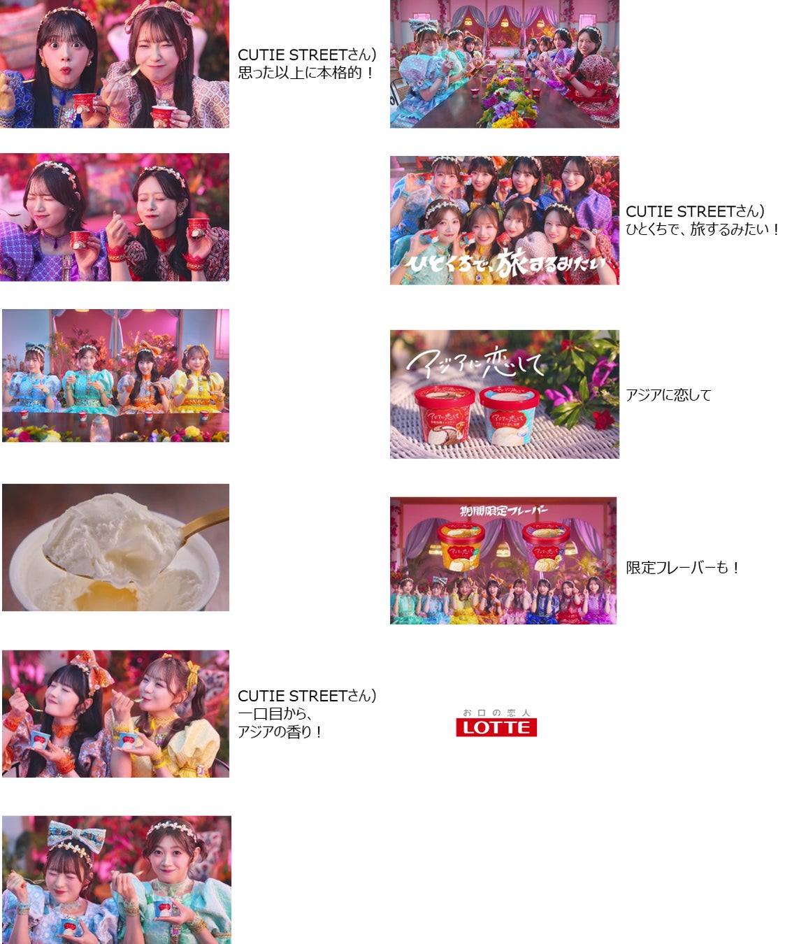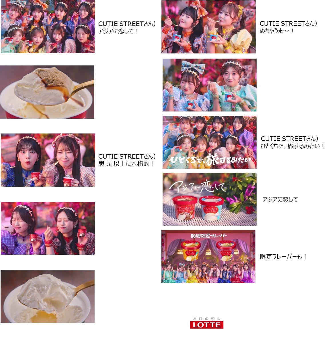 株式会社ロッテ(東京都新宿区、代表取締役社長執行役員:中島 英樹、以下 ロッテ)は、近年のアジアンスイーツの流行や体験型消費の拡大を背景に、2026年4月より10年ぶりとなる新アイスブランド「アジアに恋して」の発売を開始いたします。本ブランドの展開にあたり、アソビシステムが手掛けるアイドルグループ・CUTIE STREETとコラボレーションし、タイアップ曲『ナイスだね』を起用した新TVCMを展開してまいります。
