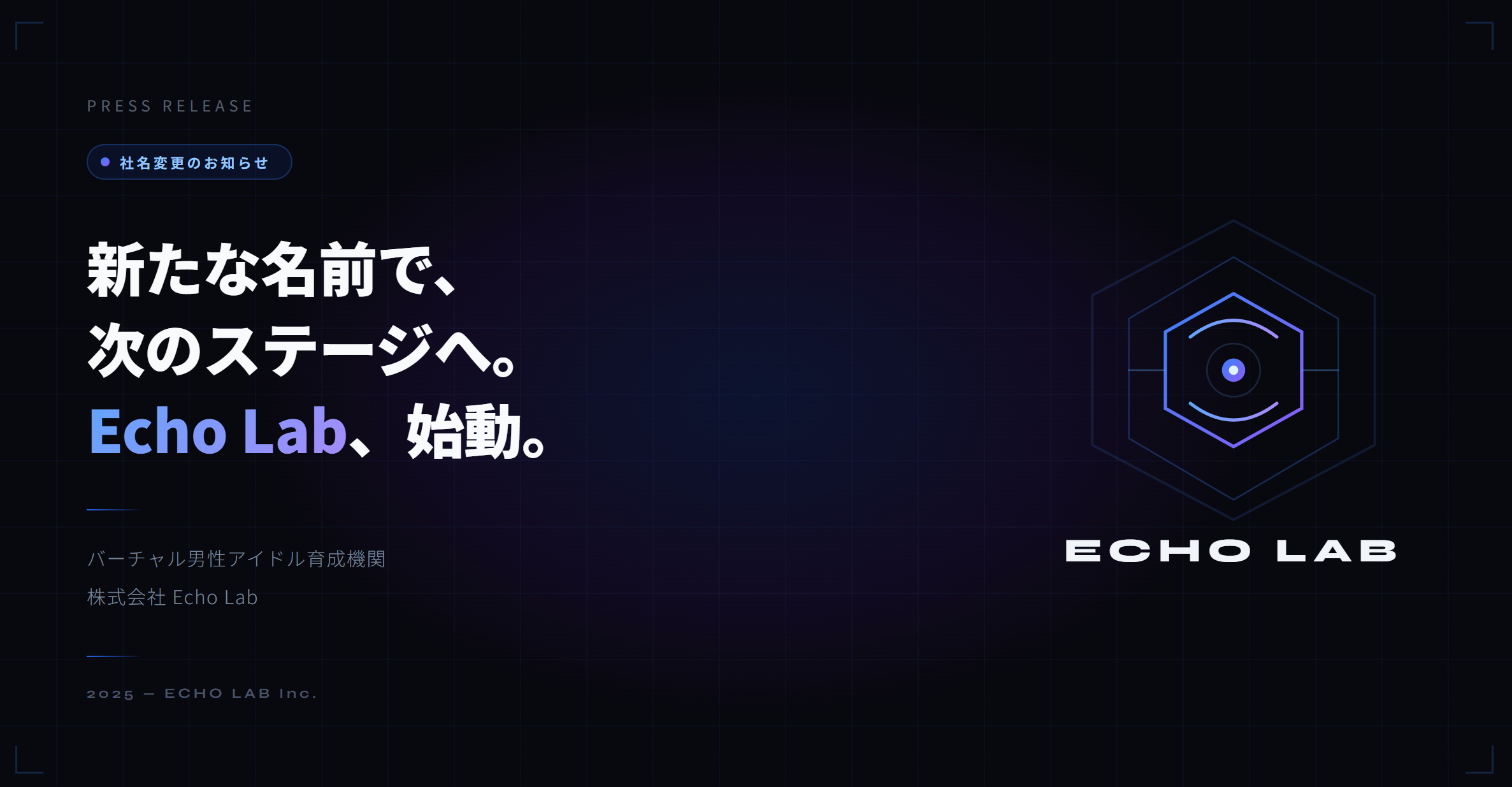 CosmixLab株式会社(本社:新宿区、代表:今井 月菜)は、2026年4月1日付で社名を株式会社Echo Lab(英文:Echo Lab Inc.)へ変更するとともに、新規事業としてVTuber事務所の運営を開始することをお知らせいたします。
