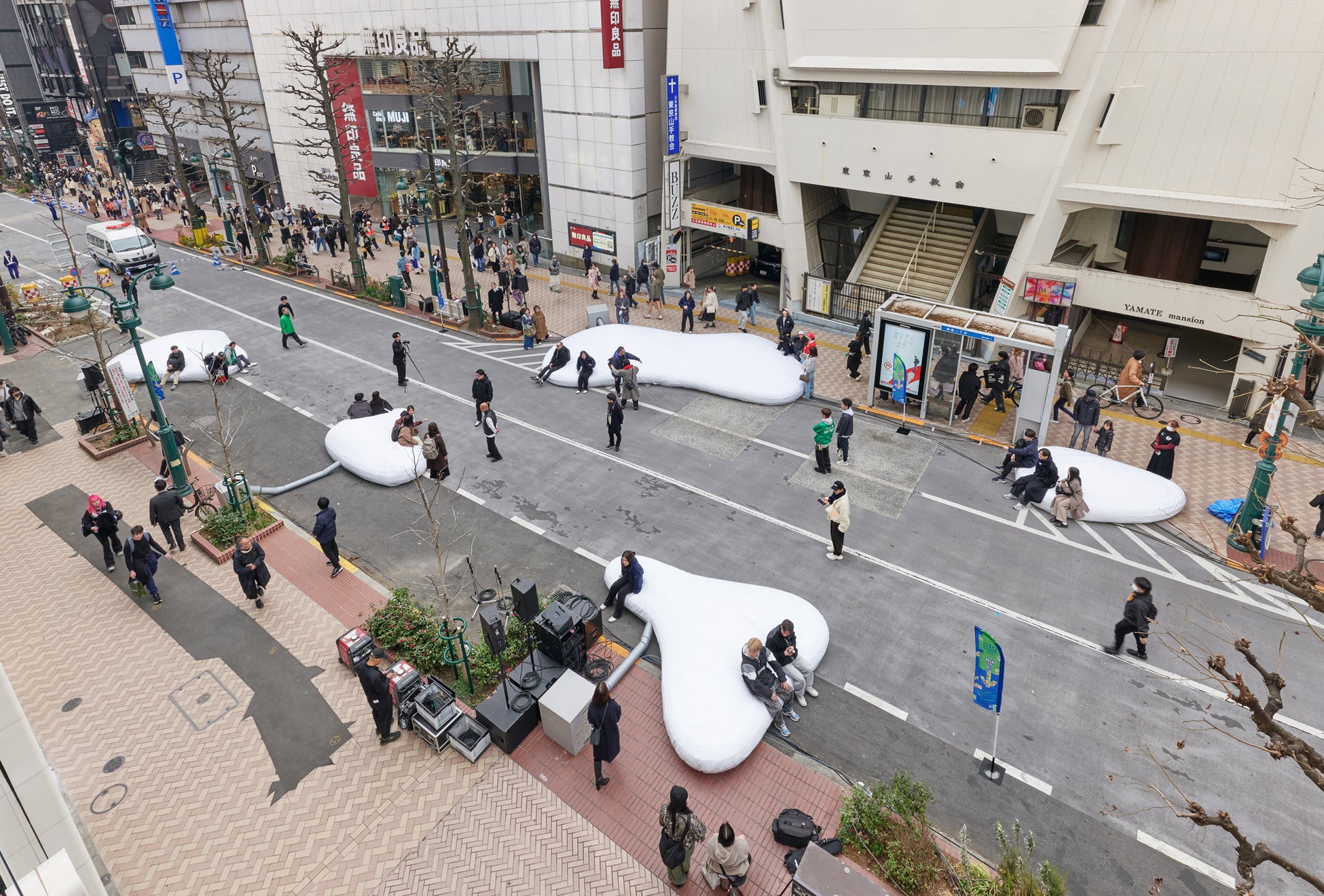 普段は通り過ぎてしまう場所を、立ち止まり・見上げ・参加する場と変貌させます。