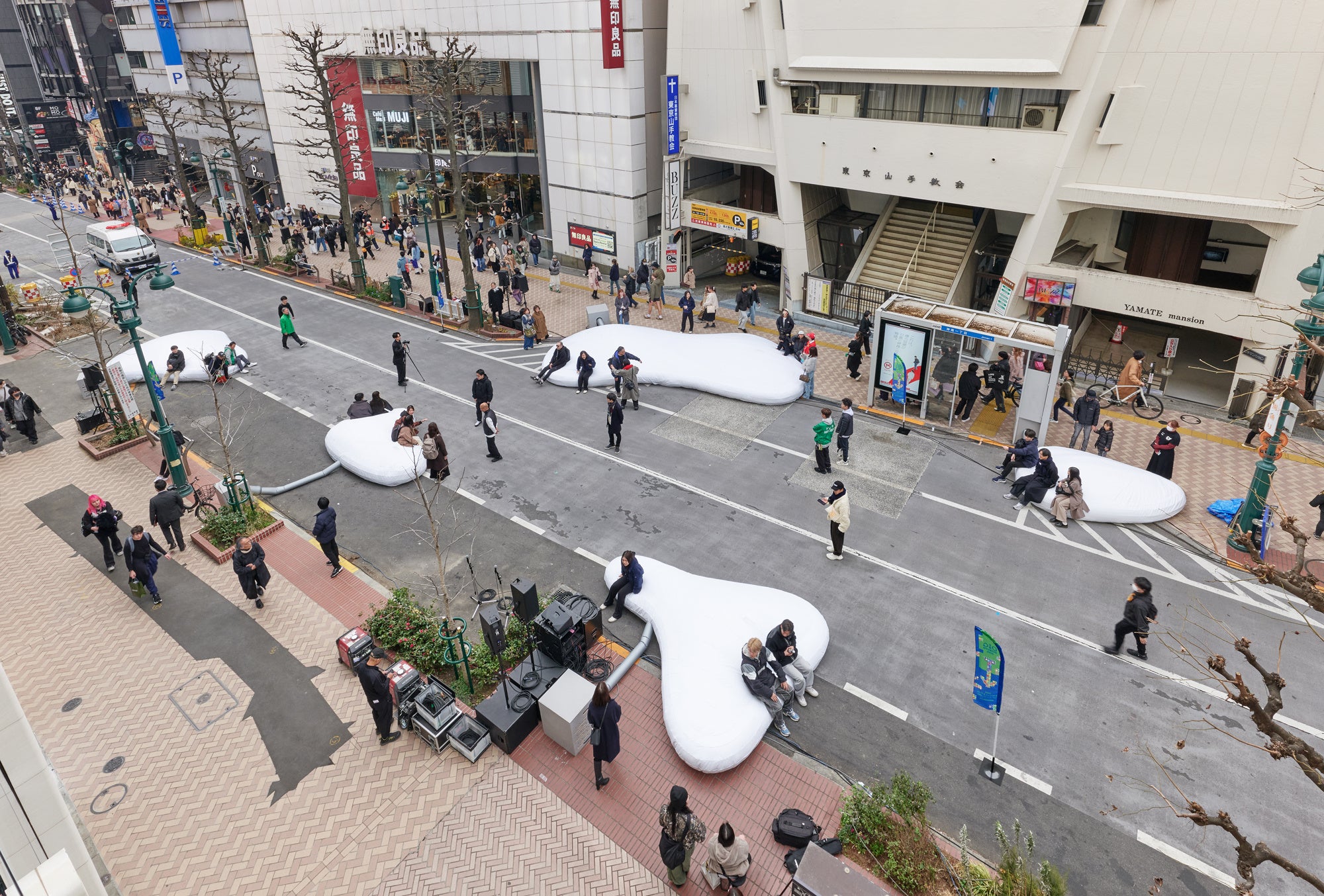 普段は通り過ぎてしまう場所を、立ち止まり・見上げ・参加する場と変貌させます。