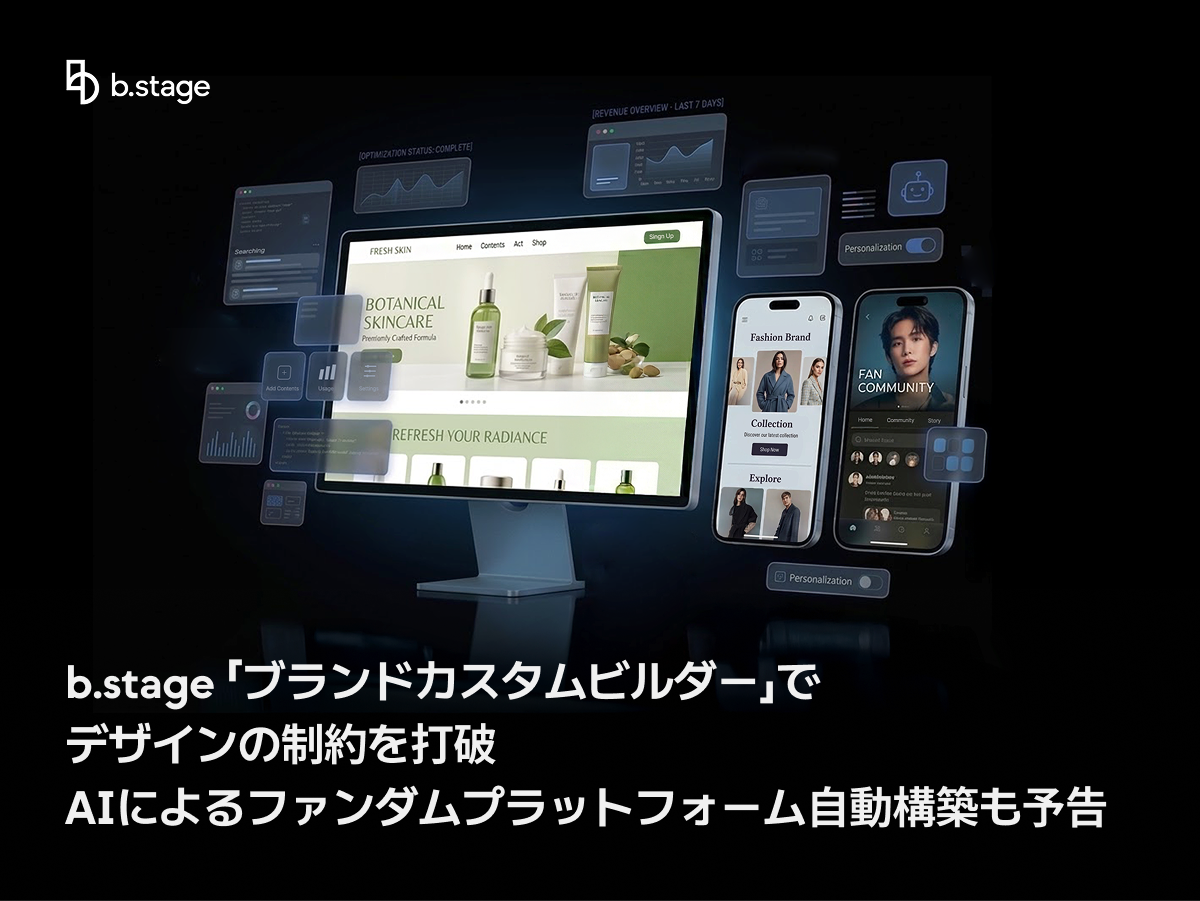 ブランドカスタムビルダーは、b.stageの既存サービス全体とシームレスに連携する。b.stageはこれまで、コミュニティ、メンバーシップ、コマース、コンテンツ、CRMを一つのプラットフォームで提供してきた。これに完全なデザインの自由度が加わることで、IP事業者がファンとの接点を設計から運営・分析まで一元管理できる体制が整った。