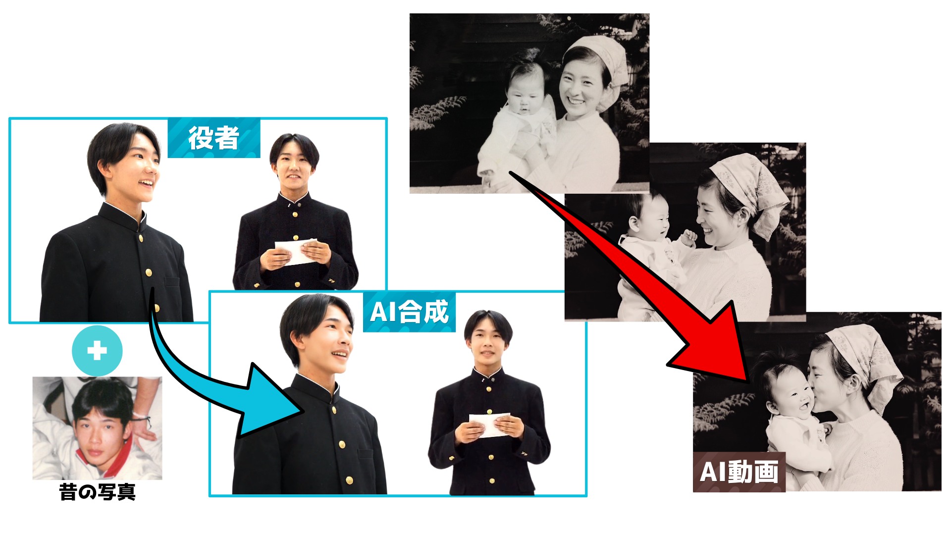役者・落語家による再現演出とAI技術を組み合わせ、