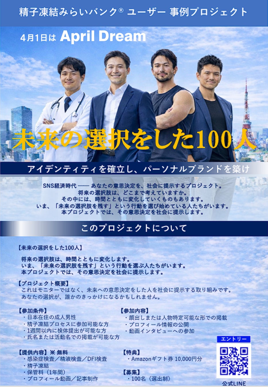 予防的精子凍結の普及を目的とし、100名のモニター参加者を募集します。