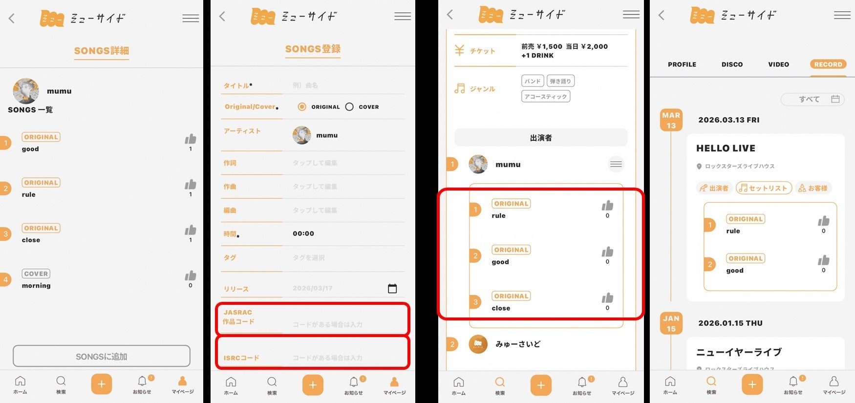 ※過去のライブイベントで演奏した共演者やセットリストを記録できる機能。