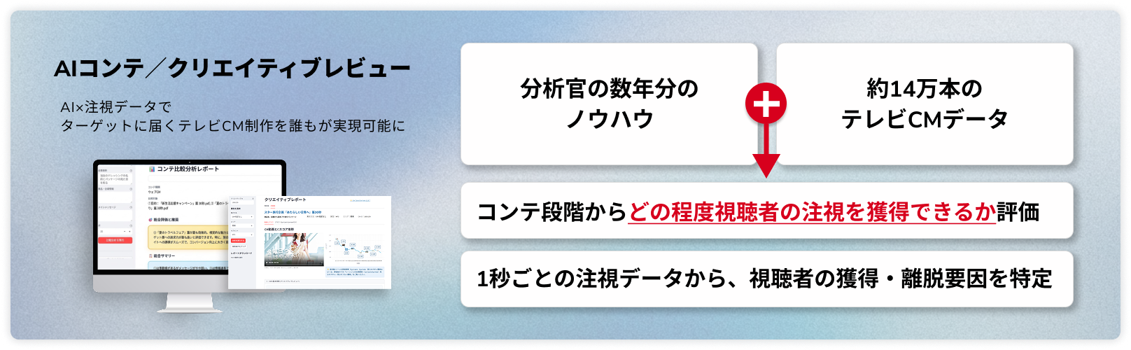 経験や勘に頼ることなく、根拠のある演出でアテンション(注視)を獲得する=CM認知の向上が期待できるCMクリエイティブを目指しました。