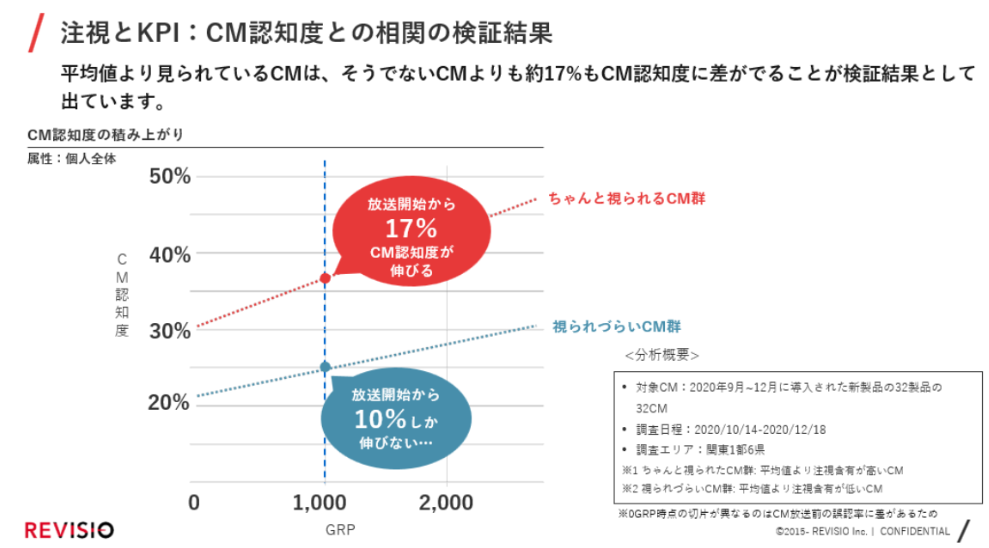 REVISIOの調査では、CM認知の向上には「アテンション」が相関することがわかっています。このデータを活用することで「視聴者によく視られ、しっかり伝わるCM」を目指しました。