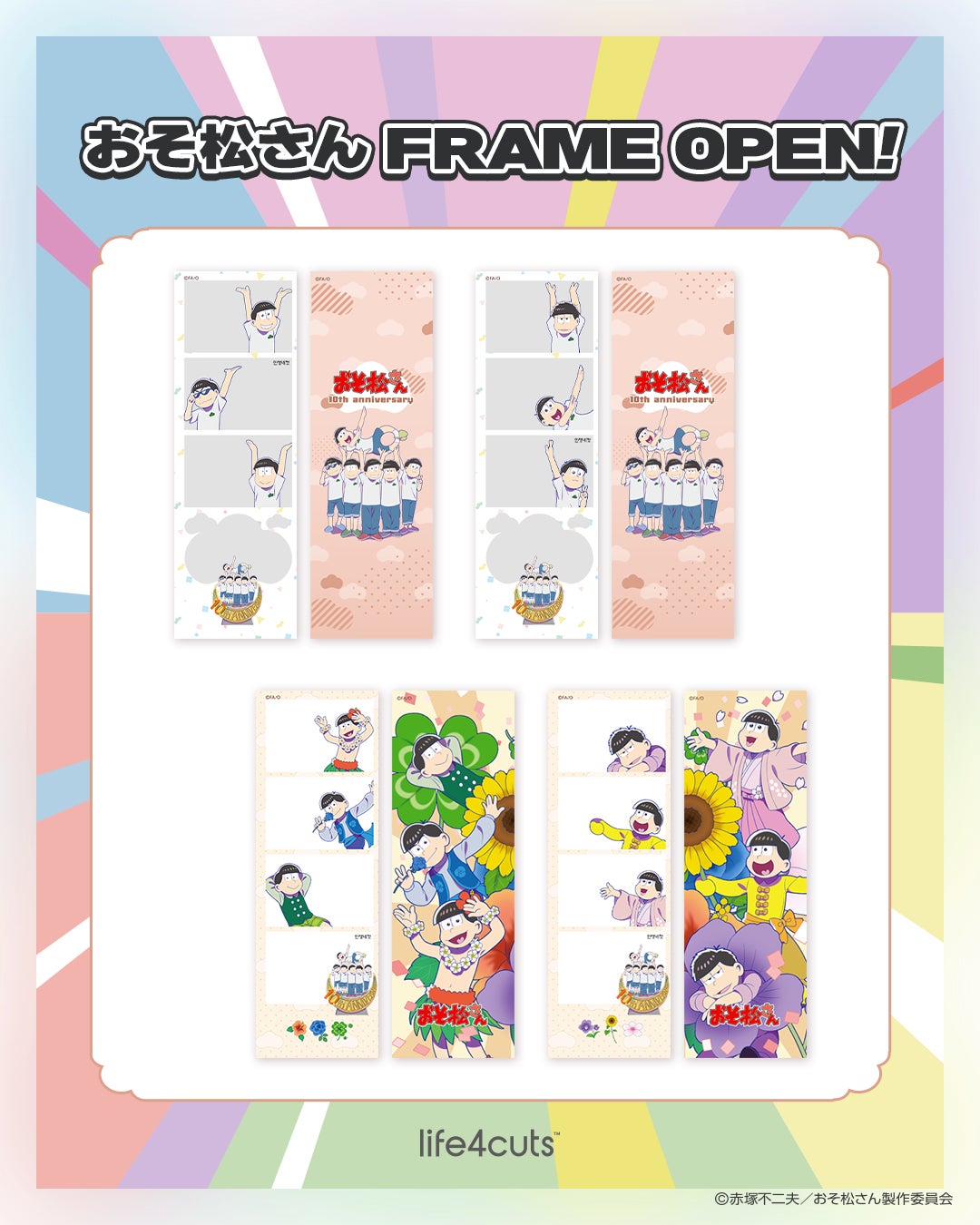 株式会社DONGRAMY PROJECT(本社:福岡県北九州市)が運営する韓国発のセルフフォトブランド「人生4カット」は、話題のアニメ『おそ松さん』とのスペシャルコラボレーションにおいて、「大松の市」会場限定で展開していたコラボフレームを、2026年4月1日(水)より人生4カット対象店舗にて展開いたします。