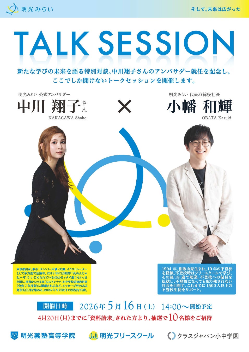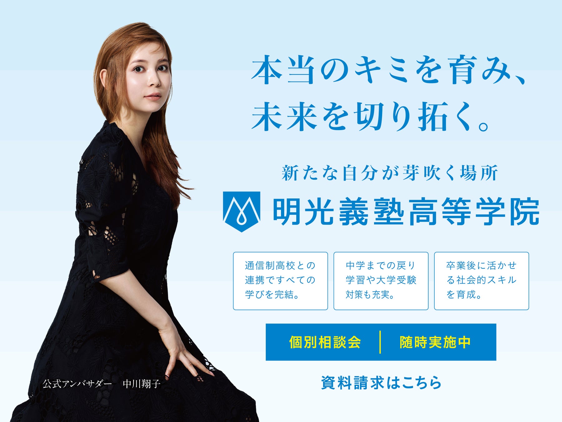 株式会社明光みらい(本社:東京都新宿区、代表取締役社長:小幡 和輝)は、不登校の経験者であり、双子の母でもある中川翔子さんをアンバサダーとして起用致します。