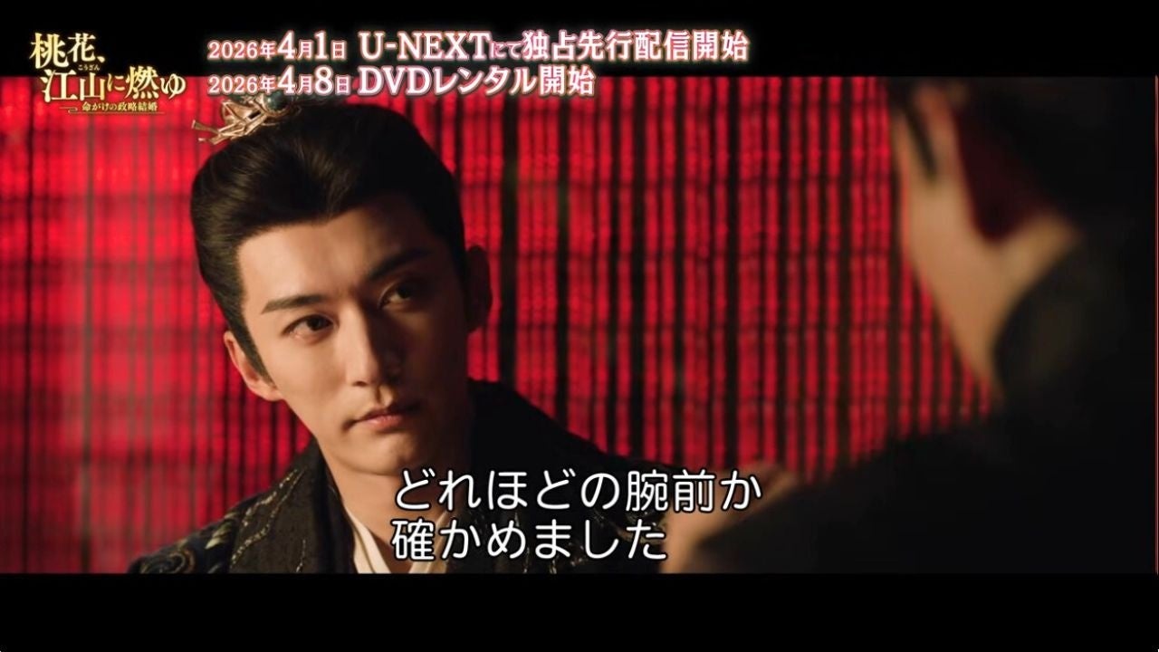「花間令<かかんれい>~Lost in Love~」リウ・シュエイー×「花令嬢の華麗なる計画」モン・ズーイー 豪華共演、「晩媚と影~紅きロマンス~」の名匠イー・ジュン監督が放つ、愛と復讐が交錯するエモーショナル・ロマンス時代劇「桃花、江山(こうざん)に燃ゆ~命がけの政略結婚~」が、NBCユニバーサル・エンターテイメントの配給により、本日4月1日(水)よりU-NEXTにて独占先行配信開始、4月8日(水)よりDVDレンタル開始いたします。