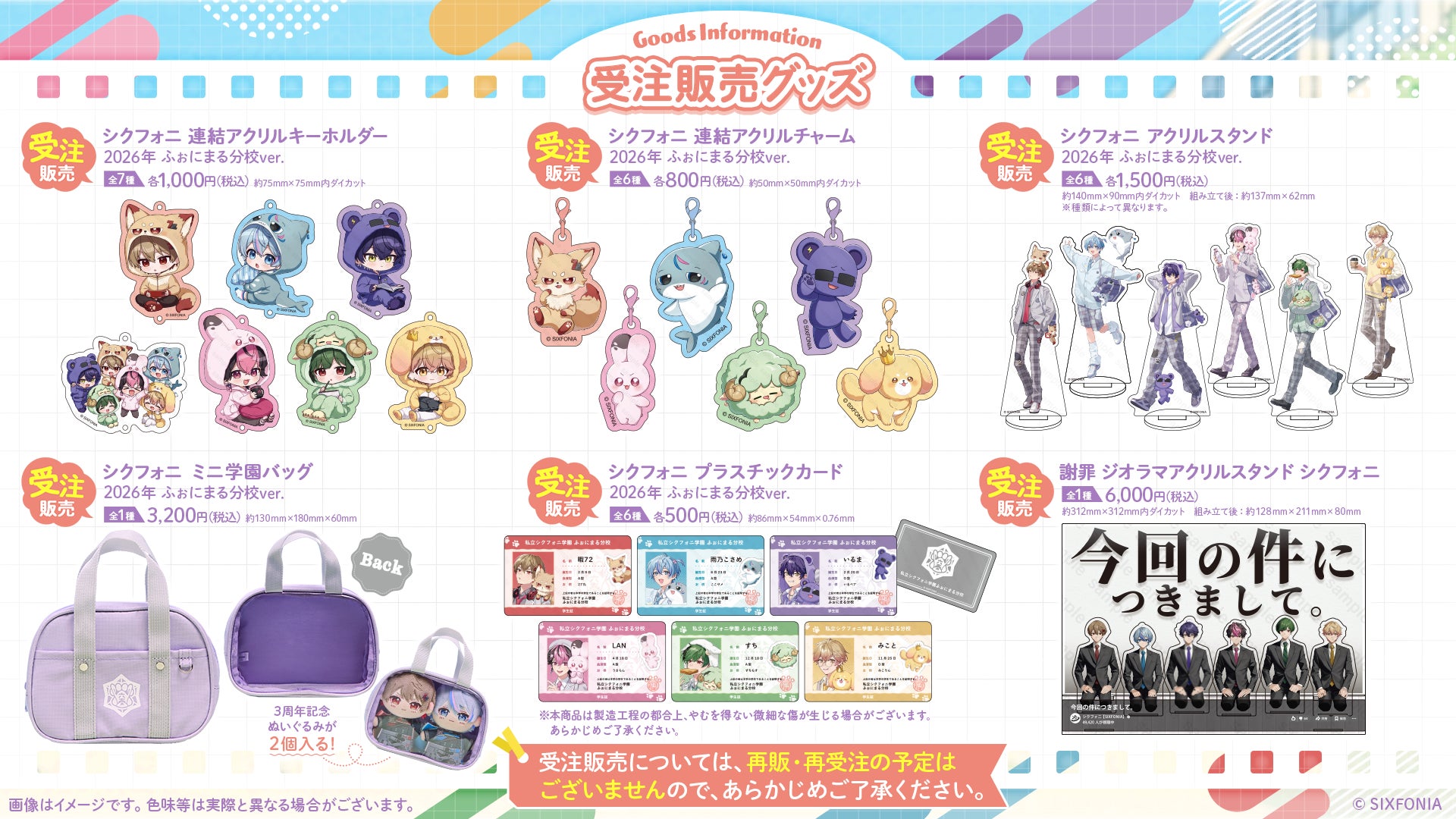 今回の発表は映像コンテンツにとどまりません。映像内に登場したアニマルキャラクター「ふぉにまる」をモチーフとした「2026ふぉにまる分校グッズ」の発売も同時に発表されました。本グッズは実際に購入可能な商品として展開されており、「ぬいぐるみキーホルダー」「連結アクリルキーホルダー」「ぬいぐるみ用フード」など、キャラクターの世界観をそのまま手元で楽しめるラインナップとなっています。受注・予約販売は、2026年4月1日(水)19:00から4月12日(日)23:59まで、シクフォニ公式オンラインストア「シクストア」にて実施中です。