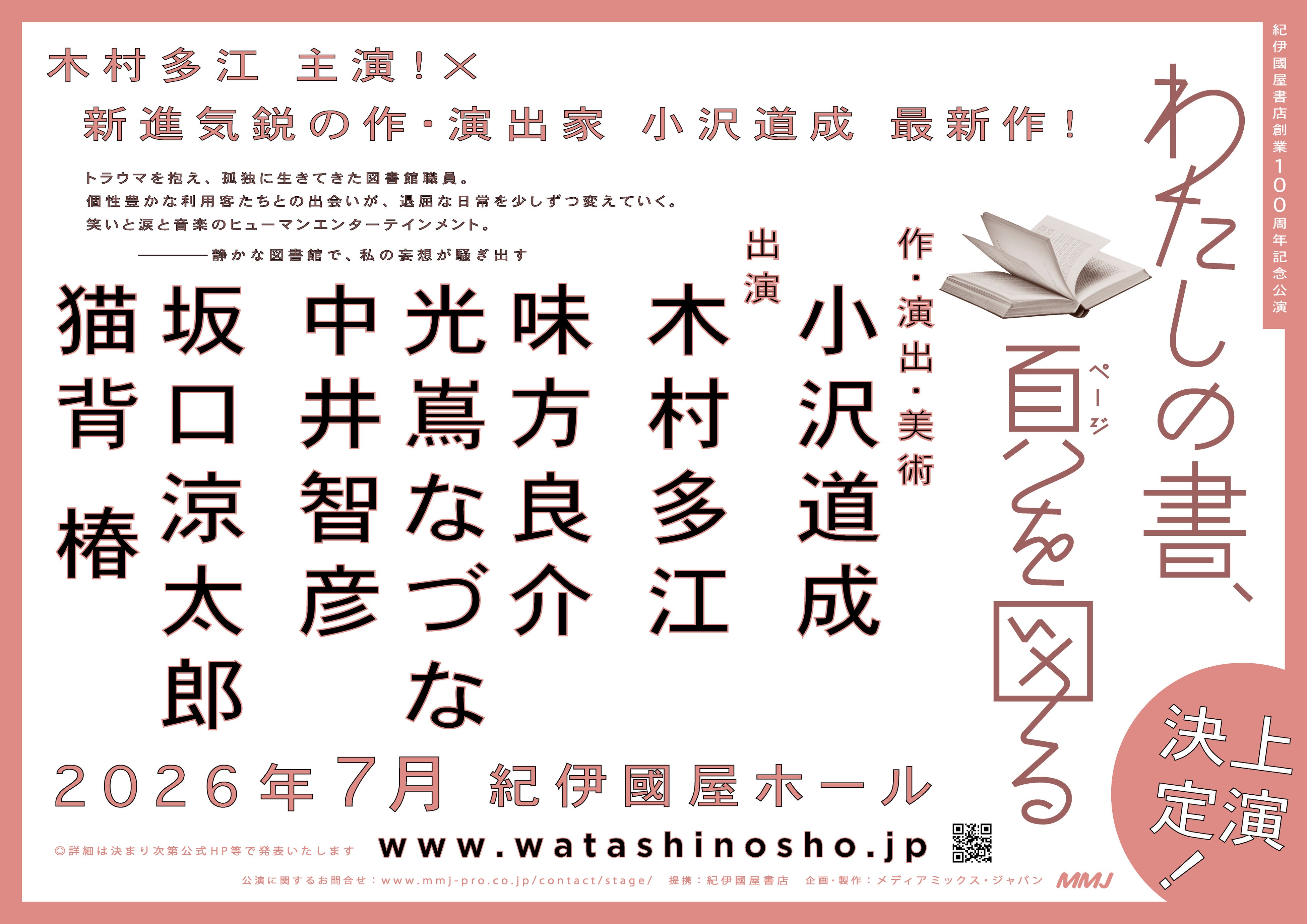 この度、木村多江初主演作、小沢道成演出で紀伊國屋書店創業100周年記念公演『わたしの書、頁(ページ)を図る』の上演が決定しました。作・演出・美術の小沢道成、主演の木村多江からの意気込みコメントも到着!!