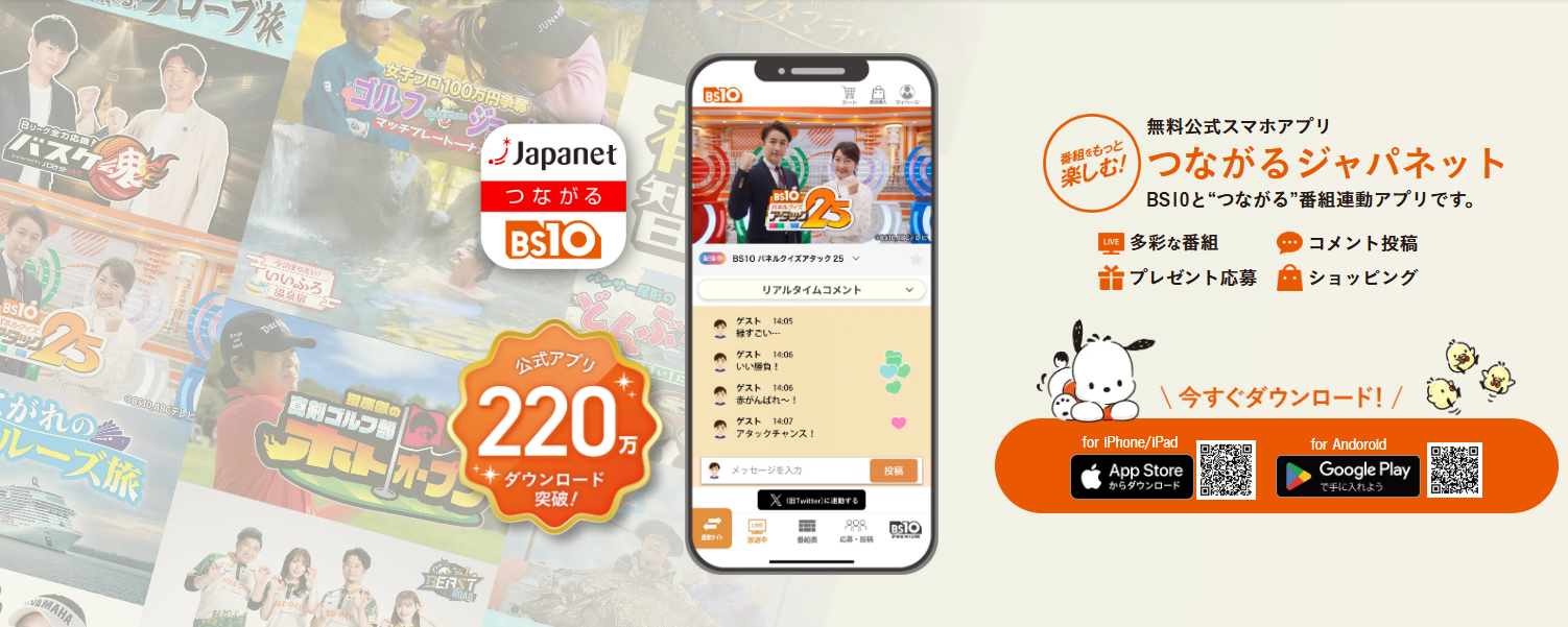 本番組をBS放送中に同時配信で視聴することができるほか、放送中にリアルタイムでほかの視聴者の方とコメント投稿を楽しんだり、番組企画への応募をしたりすることができます。