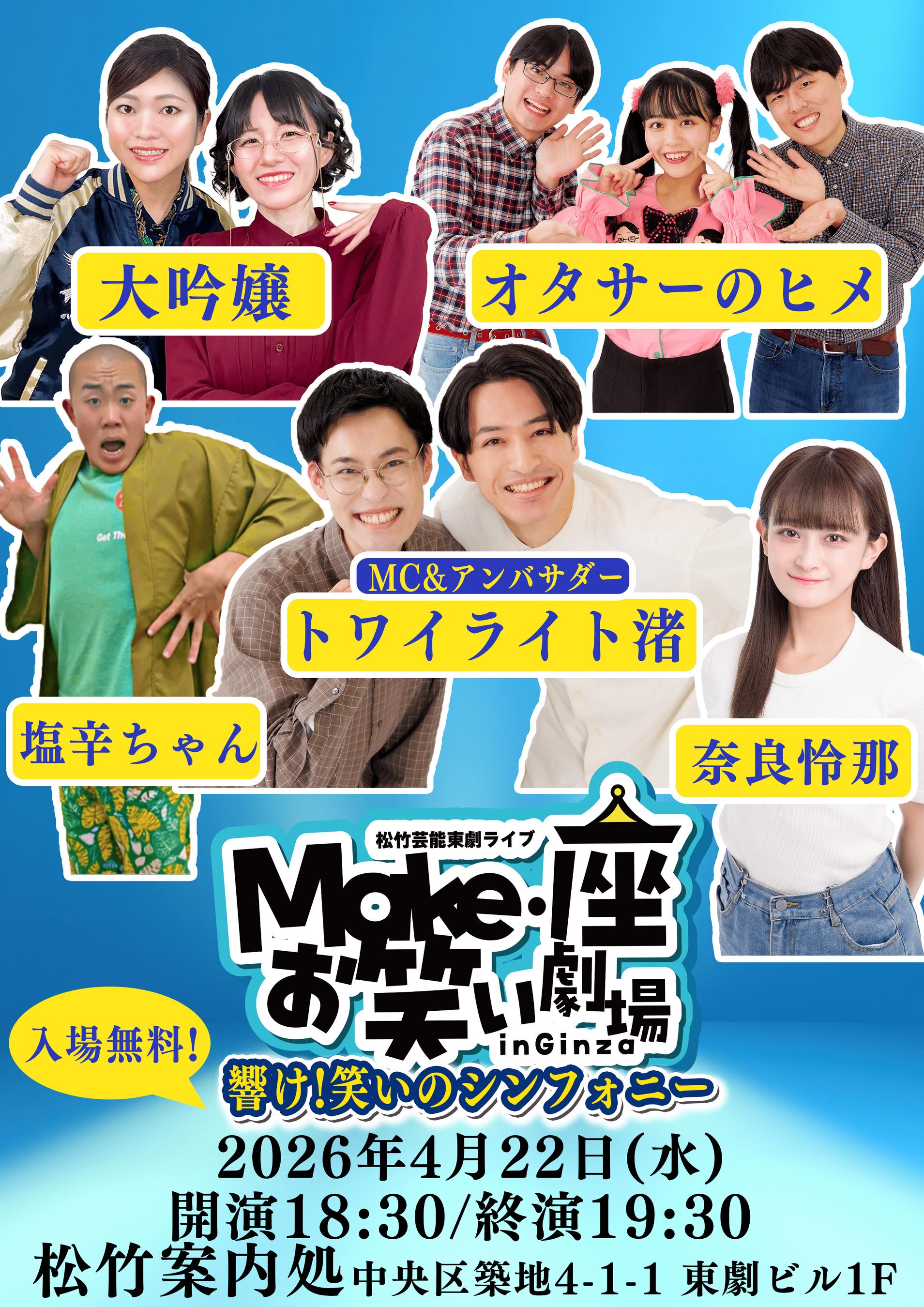 【入場無料】4月22日(水)松竹芸能 東劇ライブMake・座・お笑い劇場 in Ginza~響け!笑いのシンフォニー~開催