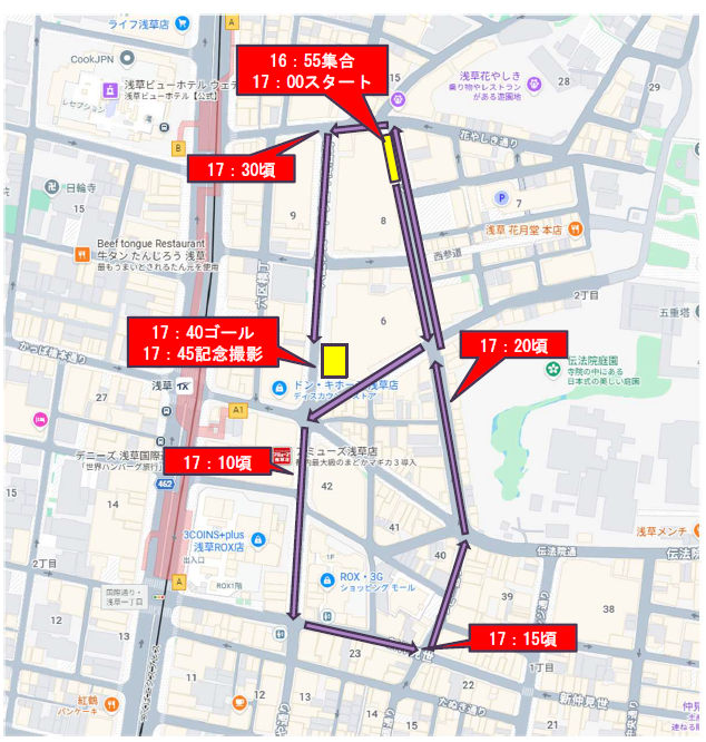 17:00頃 浅草六区周辺からスタート
