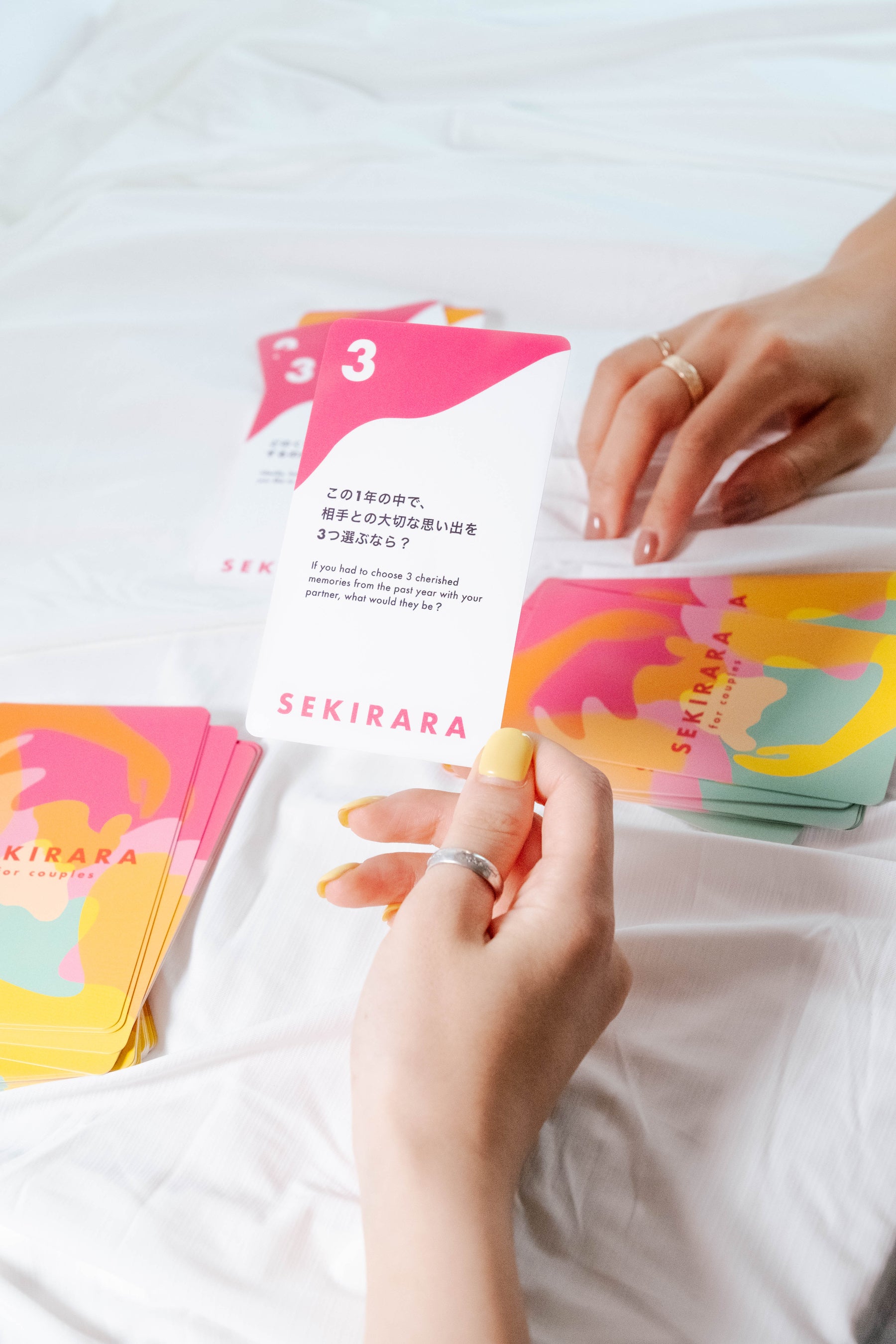 セキララカードは、恋人同士や家族、自分自身との関係を深めるコミュニケーションカード。カードに書かれた「問い」をきっかけに、普段は言えない本音の会話を始めることを目的としています。関係性や心の状態に合わせて選べる全8種類のコレクションを展開しており、「本音で話すきっかけ」をつくることを目的に、現在国内を含め、世界中で10万人以上に愛用いただいています。2023年11月の設立からわずか2年あまりで、InstagramリールはSNS総再生回数6,000万回以上、フォロワー約5万人を獲得しました。