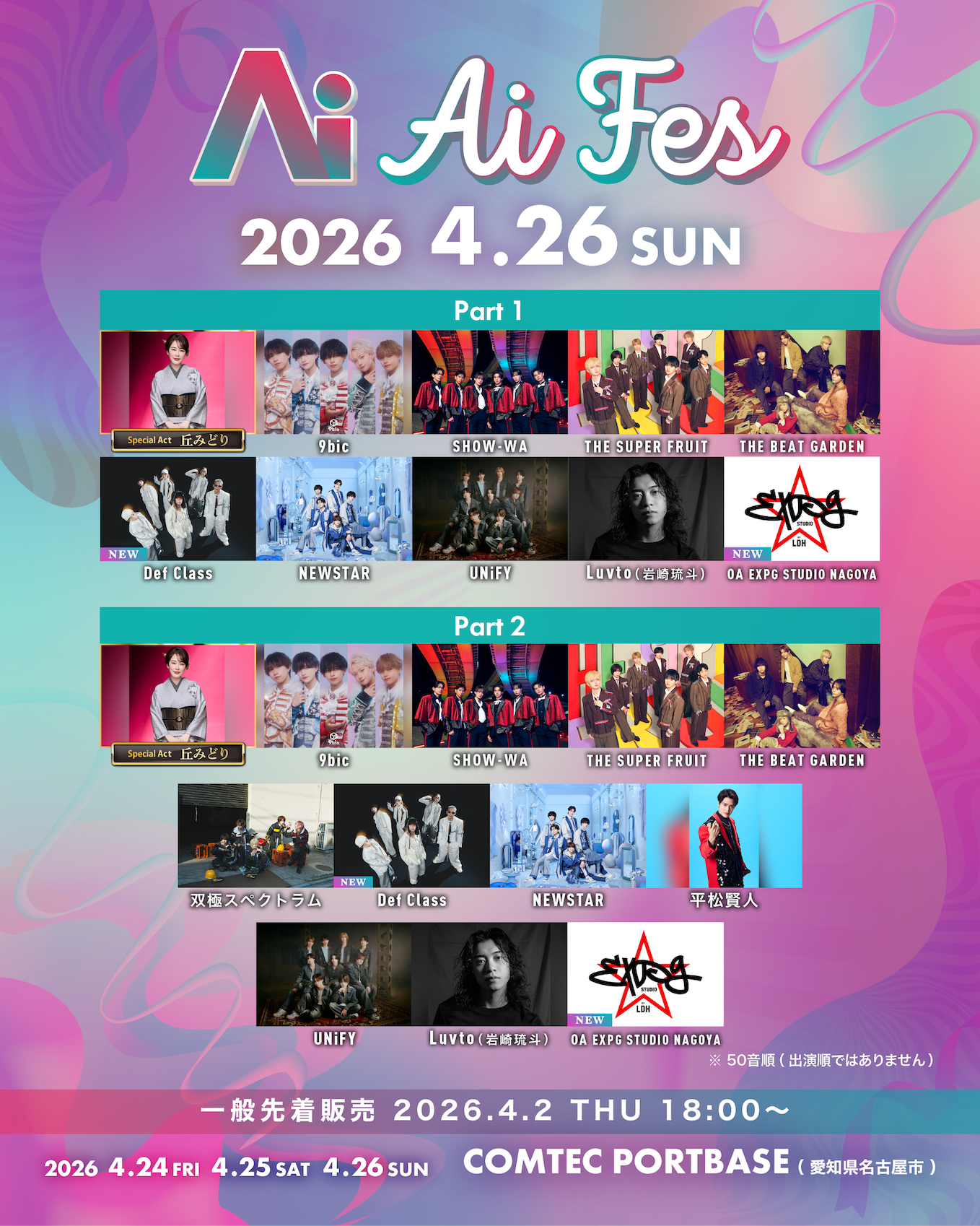 「Ai FES」が2026年04月24日(金)・25日(土)・26日(日)、にCOMTEC PORTBASE(愛知県名古屋市港区金川町3番5号)にて開催されます。チケットはイベントプラットフォーム「TIGET」にて販売中です。