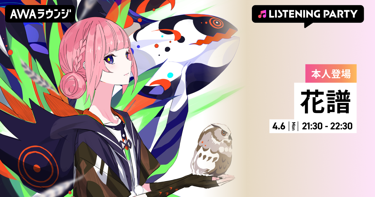 AWA株式会社(本社:東京都港区、代表取締役CEO:冨樫晃己)が運営する、サブスクリプション型(定額制)音楽ストリーミングサービス「AWA(アワ)」は、2026年4月6日(月) 21:30~22:30にて、無料で誰でも参加できるオンライン空間「AWAラウンジ」で、花譜が音声とチャットで登場するリスニングパーティーを開催いたします。