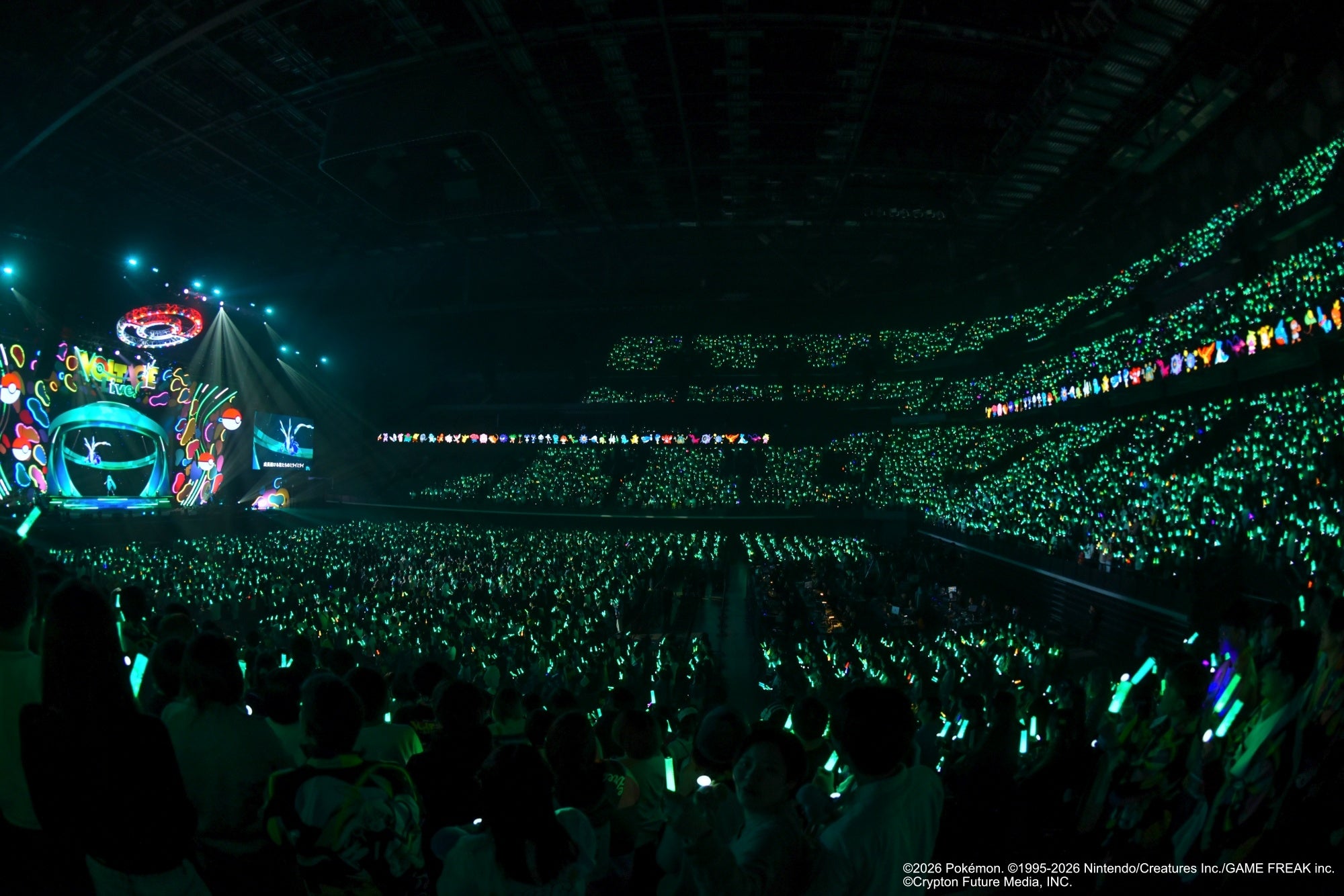 本ライブは、バーチャルシンガー『初音ミク』と、株式会社ポケモン(本社:東京都港区六本⽊、代表取締役社⻑:⽯原恒和)がプロデュースする『ポケットモンスター』(以下ポケモン)のコラボプロジェクト「ポケモン feat. 初音ミク Project VOLTAGE High↑」(通称「ポケミク」)の一環として実現したものです。千葉県南船橋駅近くのLaLa arena TOKYO-BAYにて、2026年3月20日(金)~22日(日)の3日間にわたり全6公演を実施。当社が展開するバーチャルシンガー(初音ミク、鏡音リン、鏡音レン、巡音ルカ、MEIKO、KAITO)が様々なポケモンたちと共演し、ゲストとして重音テトも出演しました。
