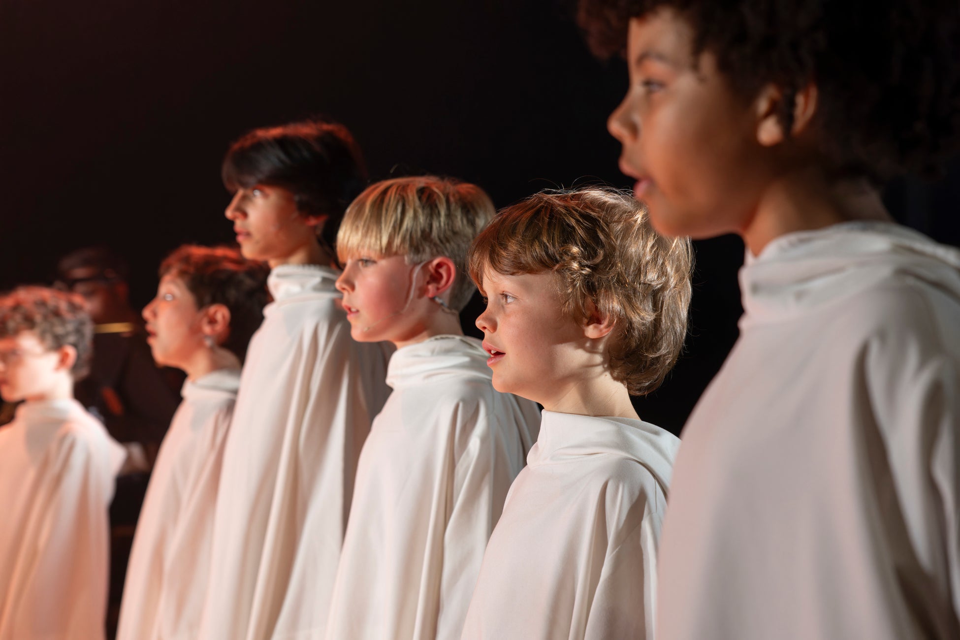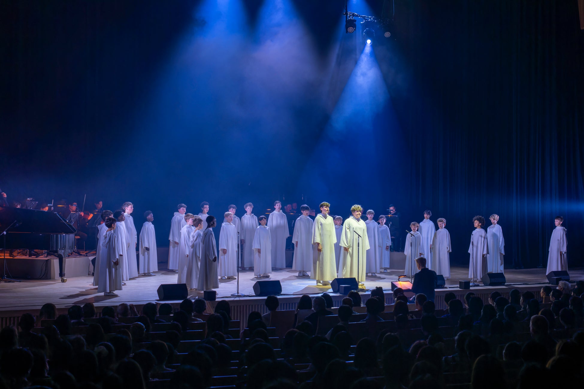30日の初演では、ステージにオーケストラのメンバーが登場すると、待ち焦がれた満席の会場から自然と拍手が沸き起こる。にわかに熱気を帯びた会場が静かな興奮に包まれていく中、リベラの正装である白いローブに身を包んだメンバーたちが登場すると、霧のように充満した期待感は最高潮に。しかし、歌い始めたメンバーの最初の1音で、その霧は一気に晴れ、彼らの美しい声によって浄化されてしまう。1音で全員の心が洗われ、「透き通った歌声を聞き漏らすまい」と思考ではなく体が反応したかのように会場中の観客が耳をそばだて、早くも“エンジェル・ヴォイス”の真価が発揮された。