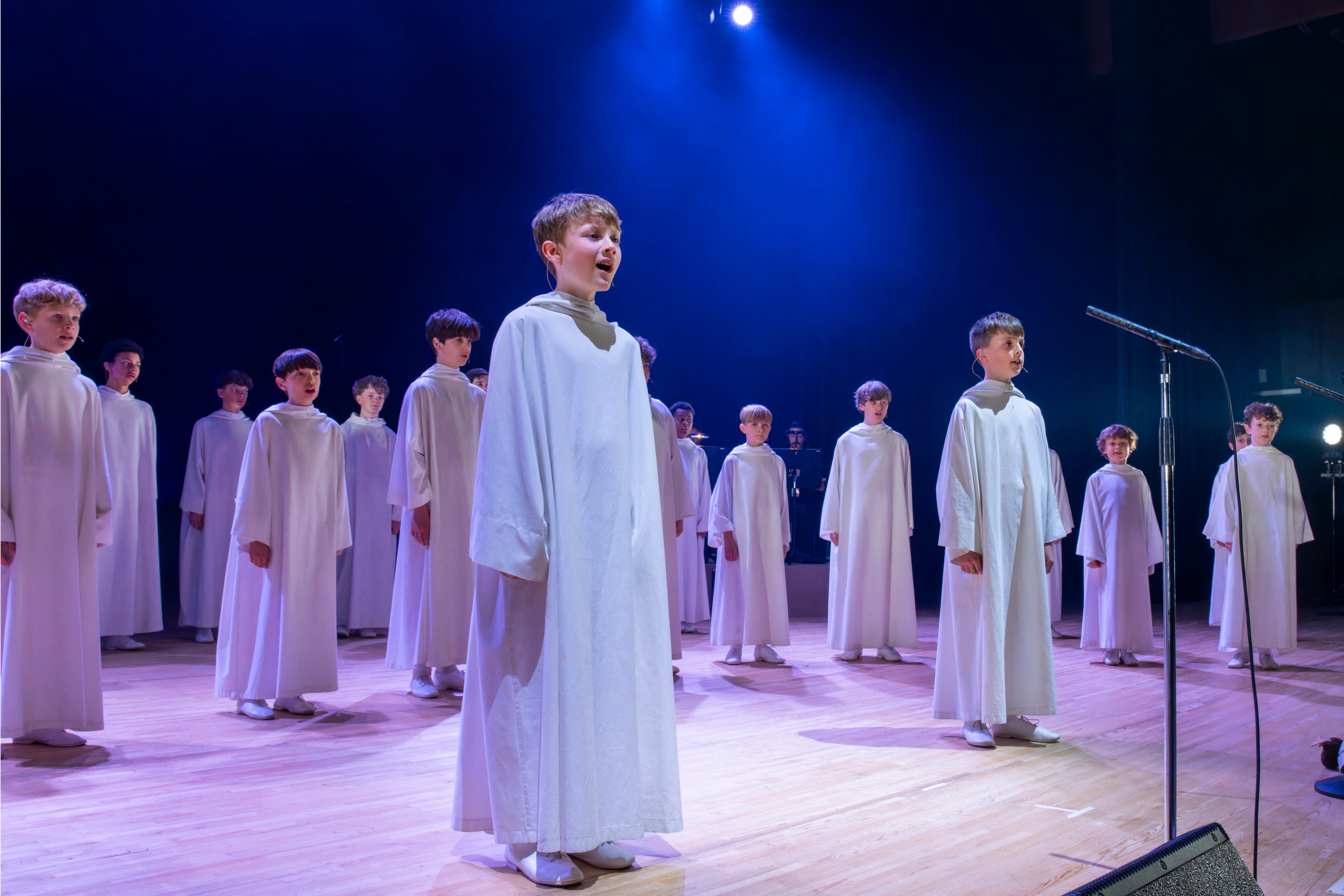 30日の初演では、ステージにオーケストラのメンバーが登場すると、待ち焦がれた満席の会場から自然と拍手が沸き起こる。にわかに熱気を帯びた会場が静かな興奮に包まれていく中、リベラの正装である白いローブに身を包んだメンバーたちが登場すると、霧のように充満した期待感は最高潮に。しかし、歌い始めたメンバーの最初の1音で、その霧は一気に晴れ、彼らの美しい声によって浄化されてしまう。1音で全員の心が洗われ、「透き通った歌声を聞き漏らすまい」と思考ではなく体が反応したかのように会場中の観客が耳をそばだて、早くも“エンジェル・ヴォイス”の真価が発揮された。