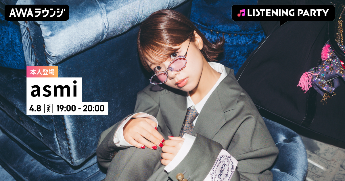 AWA株式会社(本社:東京都港区、代表取締役CEO:冨樫晃己)が運営する、サブスクリプション型(定額制)音楽ストリーミングサービス「AWA(アワ)」は、2026年4月8日(水) 19:00~20:00にて、無料で誰でも参加できるオンライン空間「AWAラウンジ」で、asmiがリアルタイムで登場するリスニングパーティーを開催いたします。