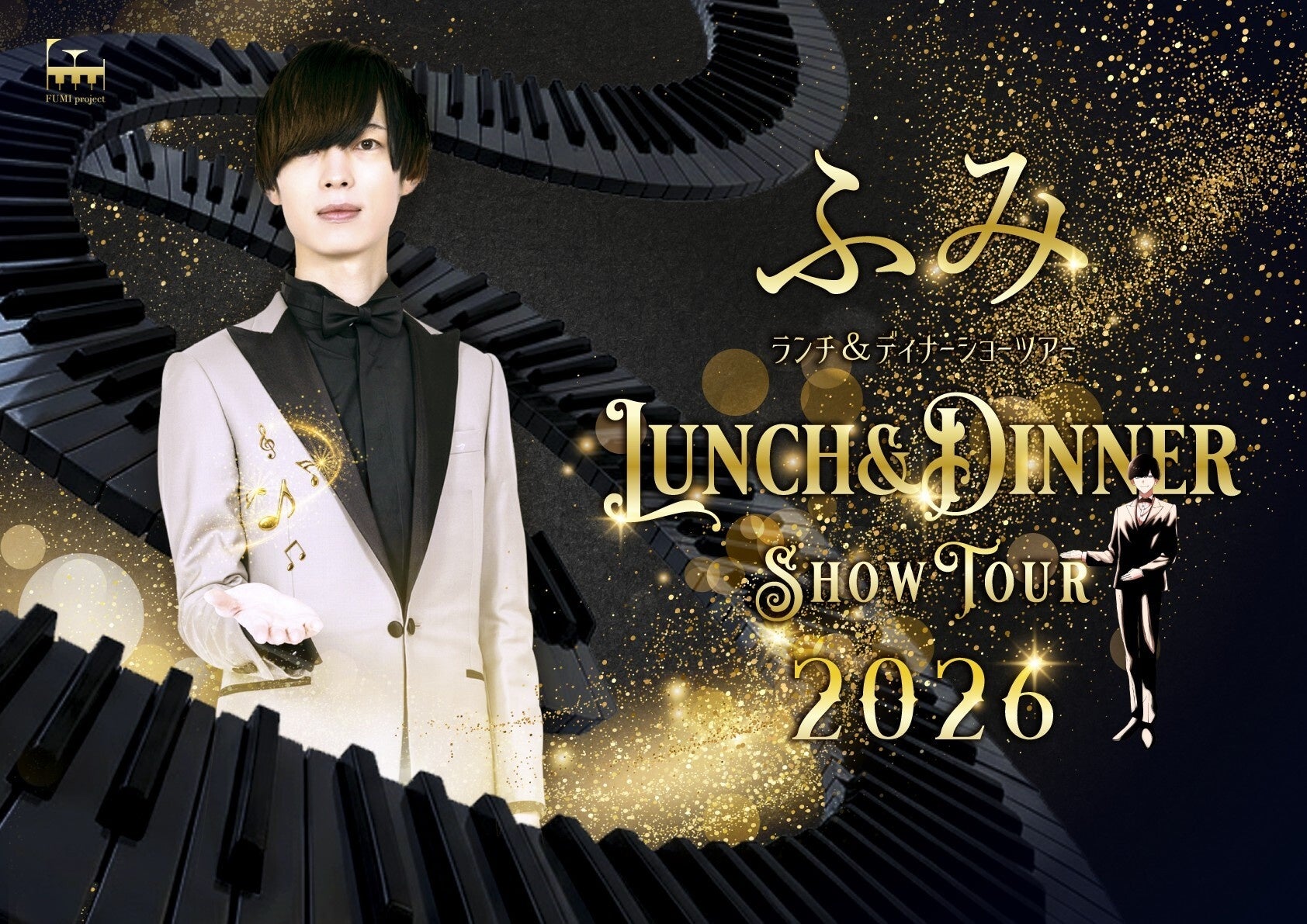 北海道を中心に活躍するピアニストYouTuber・ふみによる、初のランチ&ディナー全国ツアーが開催。ふみ考案の本公演限定スペシャルコース料理とともに、結婚式場ならではのセットリストをお楽しみいただけます。数量限定で本公演限定グッズも販売!
