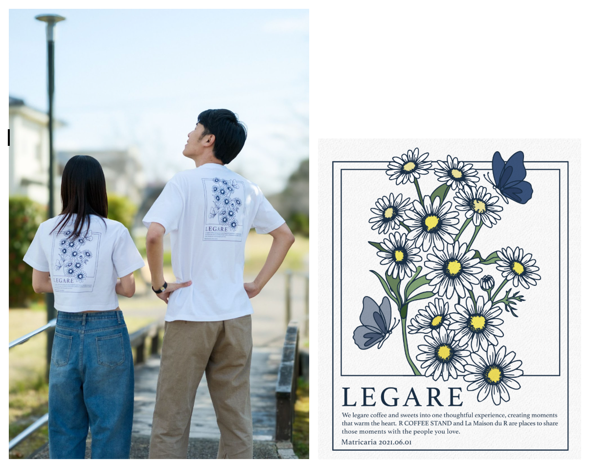 今回の催事テーマは「LEGARE」。創業日である6月1日の誕生花・マトリカリアをモチーフにしたTシャツを、髙島屋新宿店にて発売します。小さな花が集まり咲くマトリカリアのように、人と人とのつながりを大切にしたい――そんな想いを込めました。