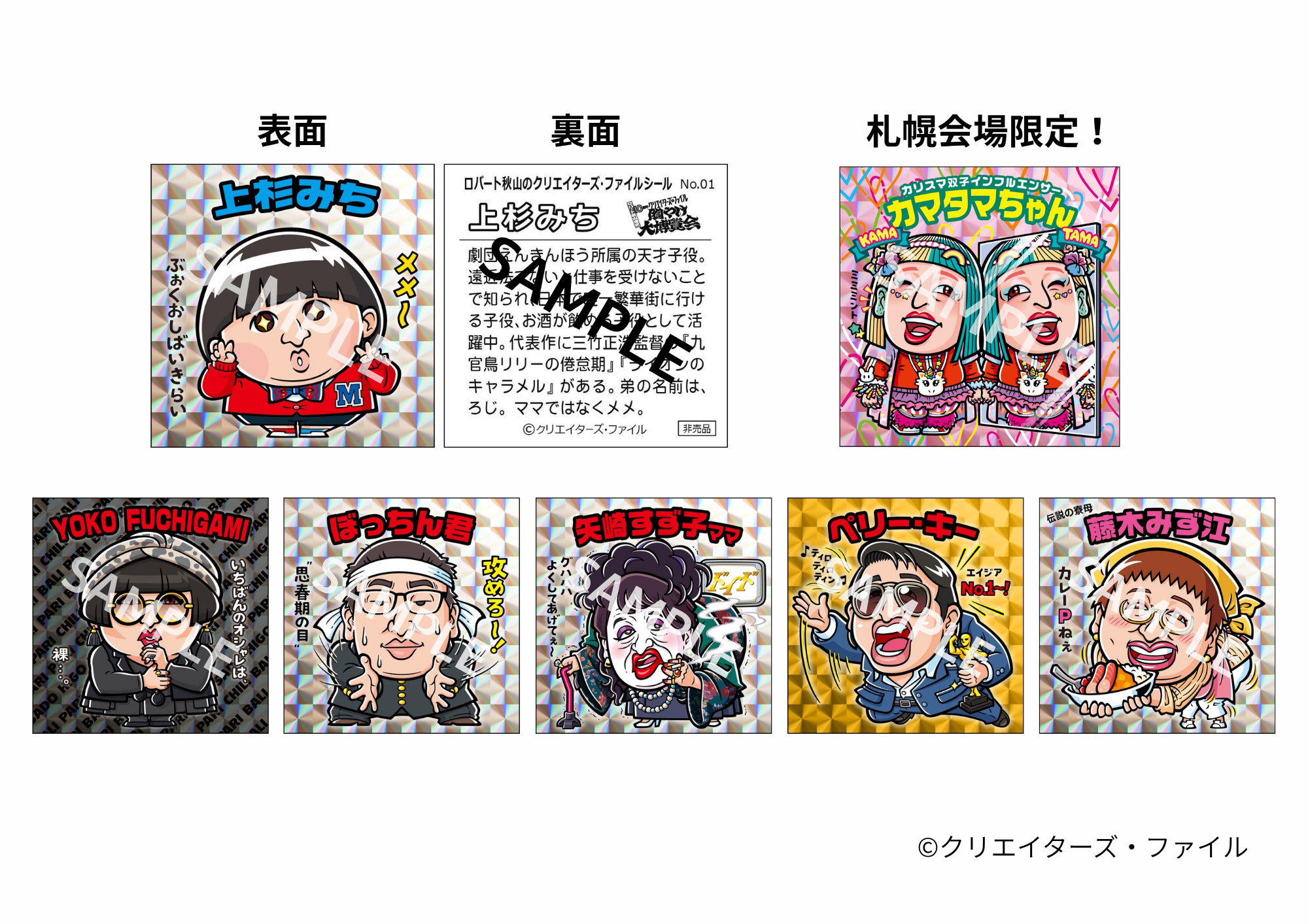 (内容)上杉みち/YOKO FUCHIGAMI/ぼっちん君/⽮崎すず⼦/ペリー・キー/藤⽊みず江/【札幌会場限定】カマタマちゃん