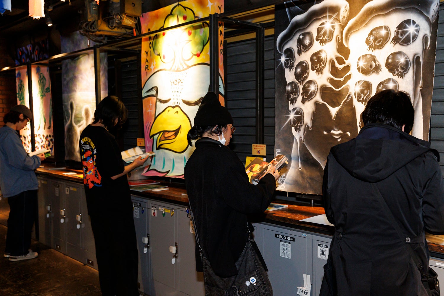17時より無料開放された4Fエリア。1997年から現在までの歴代ポスターや多彩なアートワーク、貴重なライブ写真がずらっと展示され、置かれているブックレットを夢中で読むお客さんや、過去のポスターやライブ写真を見ながら歓談するお客さんなど、フジロックの歩みを振り返る空間は多くの方で賑わいました。