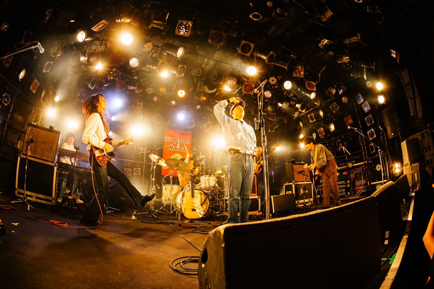 フジロックのロゴがあしらわれたフラッグを「速い車のレース(F1)の旗」だとメンバーで盛り上がった際には、フロアに笑いが巻き起こるなど、和やかな雰囲気でライブが進行。