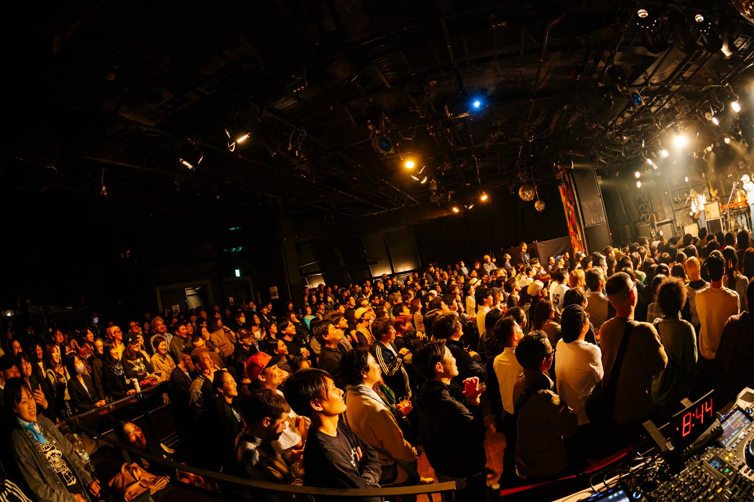 実験音楽とダンスミュージックのはざまを開拓するプレイを得意とするDJ POKASKAが、シンセサイザーを用いた豊かな音色で、ライブのスタート前や転換時間、終演後の空間を彩り、時にはフロアをほどよくクールダウンし、時にはお酒片手に踊れるエレクトロニック・ダンスミュージックを披露するなど、その場のオーディエンスを大いに盛り上げた。
