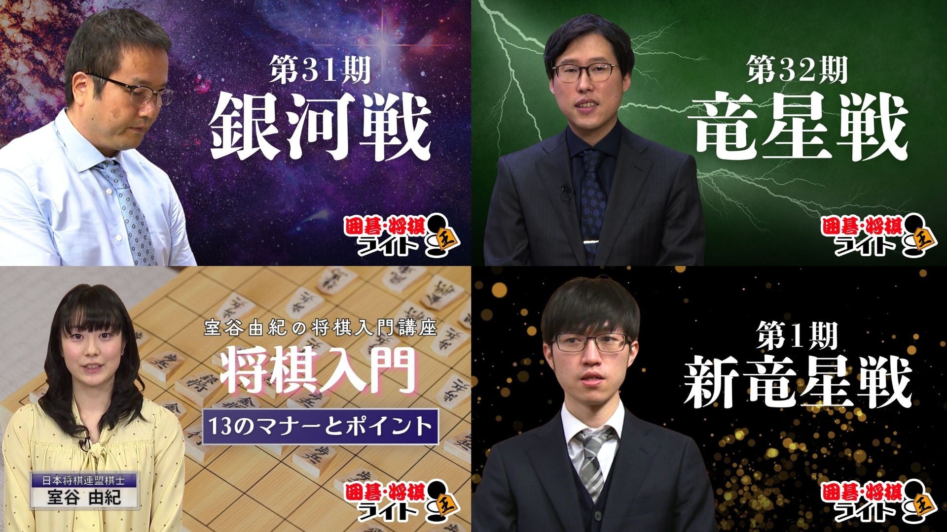 「囲碁・将棋ライト」では囲碁・将棋チャンネル公式棋戦の囲碁『竜星戦』、将棋『銀河戦』の過去放送対局を中心に放送予定です。