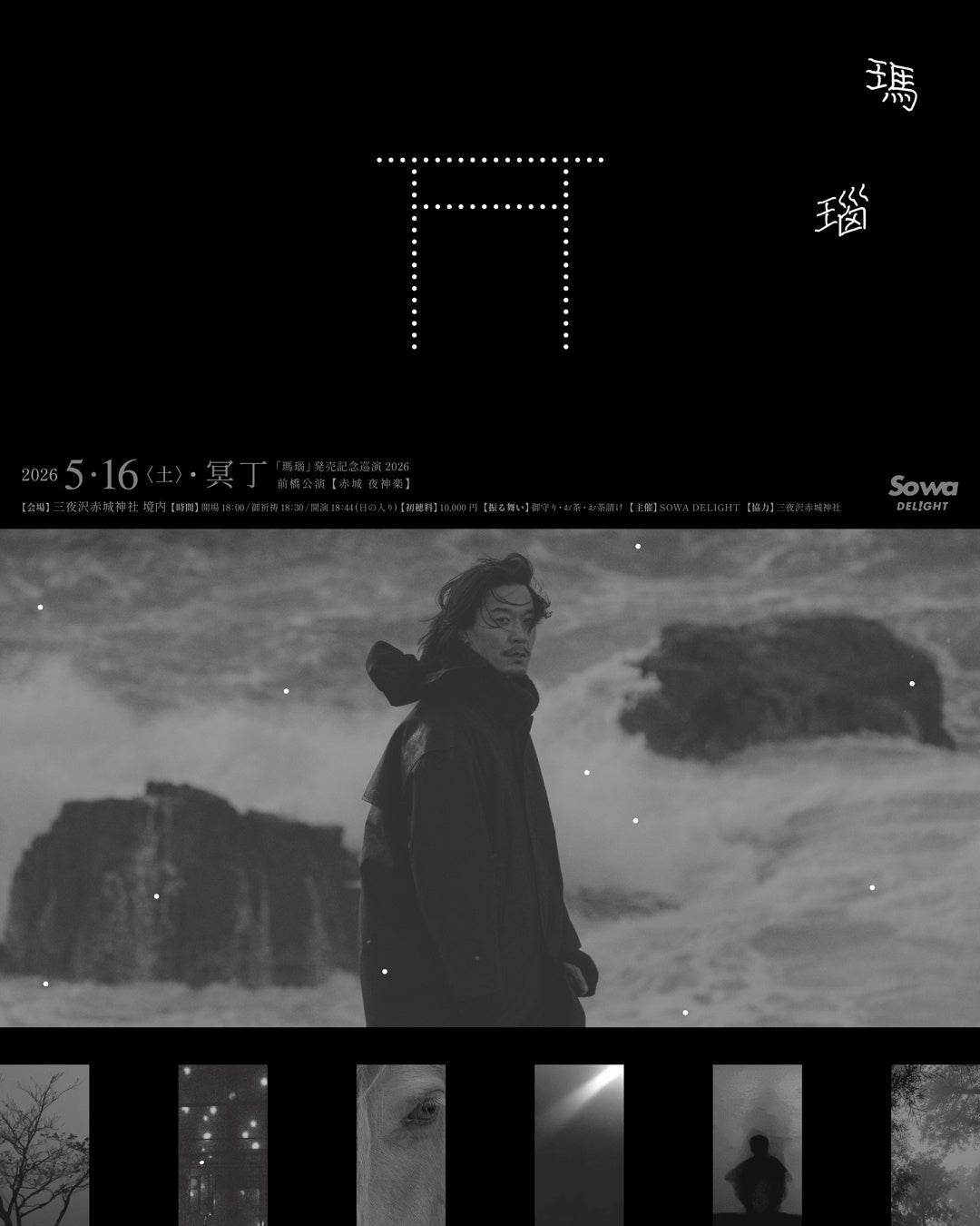 5月16日、音楽家・冥丁による公演「赤城 夜神楽」が、群馬県前橋市の三夜沢赤城神社にて開催されます。本公演は、最新作『瑪瑙』の発売記念巡演の一環として行われるものです。拝殿前でのご祈祷から始まり、日の入りとともに演奏へと移行する本公演は、神社という場に流れていた時間の在り方を、あらためてひらく試みでもあります。私たちの力の及ばぬ自然や存在に対する感謝や祈り──かつて日常の延長線上にあったそうした感覚は、いま、少しずつ遠のきつつあるのかもしれません。本公演は、その記憶に静かに触れるひとつのきっかけとなるでしょう。主催は、前橋を拠点とする電気工事会社、SOWA DELIGHT。赤城という場との長い関係性の中で育まれてきた文脈のなかに、この一夜が立ち上がります。