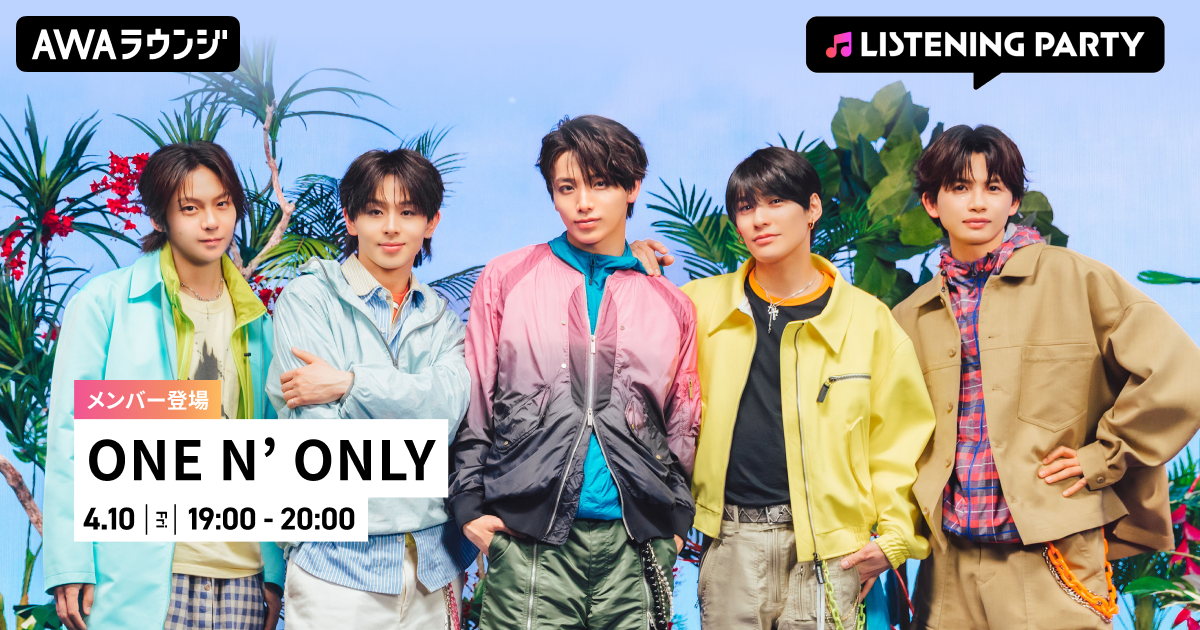 AWA株式会社(本社:東京都港区、代表取締役CEO:冨樫晃己)が運営する、サブスクリプション型(定額制)音楽ストリーミングサービス「AWA(アワ)」は、2026年4月10日(金) 19:00~20:00にて、無料で誰でも参加できるオンライン空間「ラウンジ」で、ONE N’ ONLYのメンバーが音声とチャットで登場するリスニングパーティーを開催いたします。
