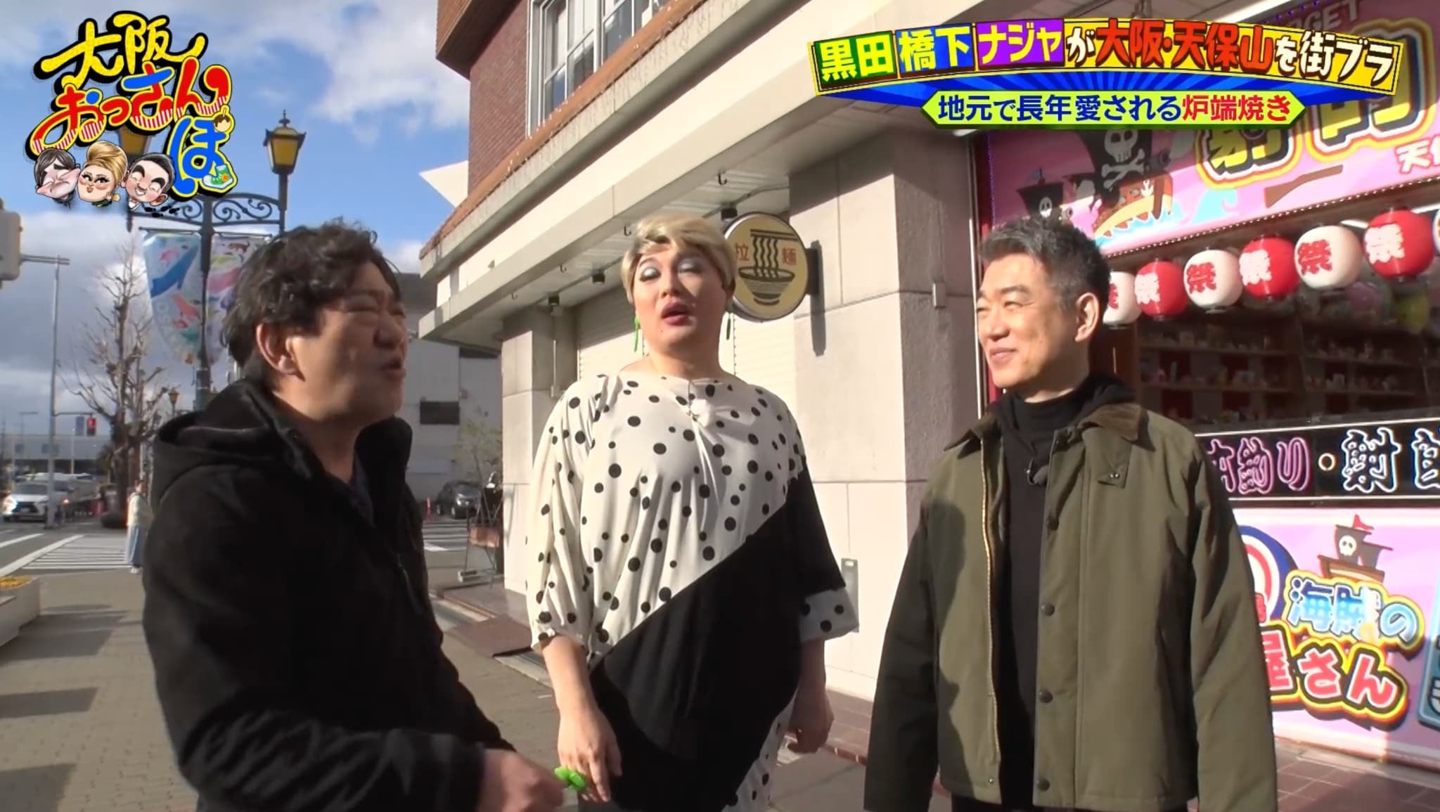 今回は、黒田有、橋下徹、ナジャ・グランディーバの3人が、大阪の湾岸部・天保山を“おっさんぽ”する。昨年12月にオープンした観光スポット「お菓子ミュージアム天保山」や、昭和の面影を色濃く残す昔ながらの町を巡る。