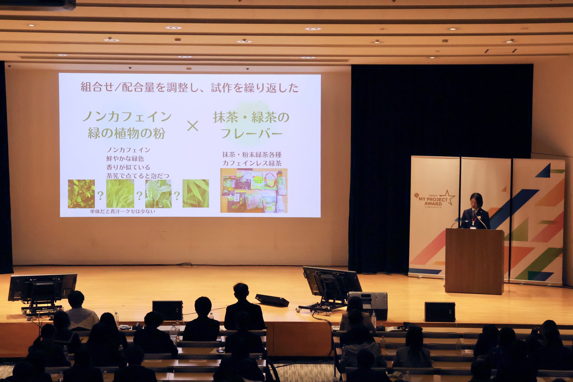 文部科学大臣賞を受賞したのは、島根県松江市の「茶の湯文化」を守るために、ノンカフェインの抹茶を開発し、文化を未来に繋ぐことを目指すプロジェクト。サポーターからは、「不都合さが生まれてきたり、新しい社会の常識が台頭してきている中で、色々なアイデアを持って、試してきた人が代案を出す社会になってきている。カフェインが苦手な人たちも含め、みんなが参加できる形を模索していくことが大事だと考え、試行錯誤を重ねたやり方が素敵であり、今求められている代案の出し方であると感じた」とコメントがありました。