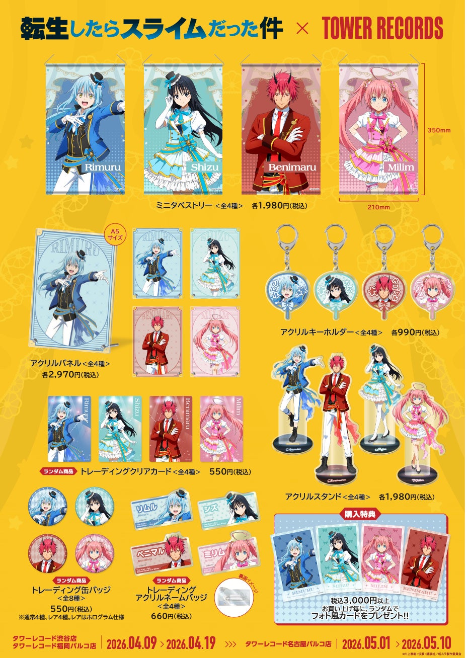 2026年4月9日(木)から、タワーレコード渋谷店・福岡パルコ店、5月1日(金)から名古屋パルコ店にてTVアニメ『転生したらスライムだった件』 POP UP SHOP in TOWER RECORDSの開催が決定しました!