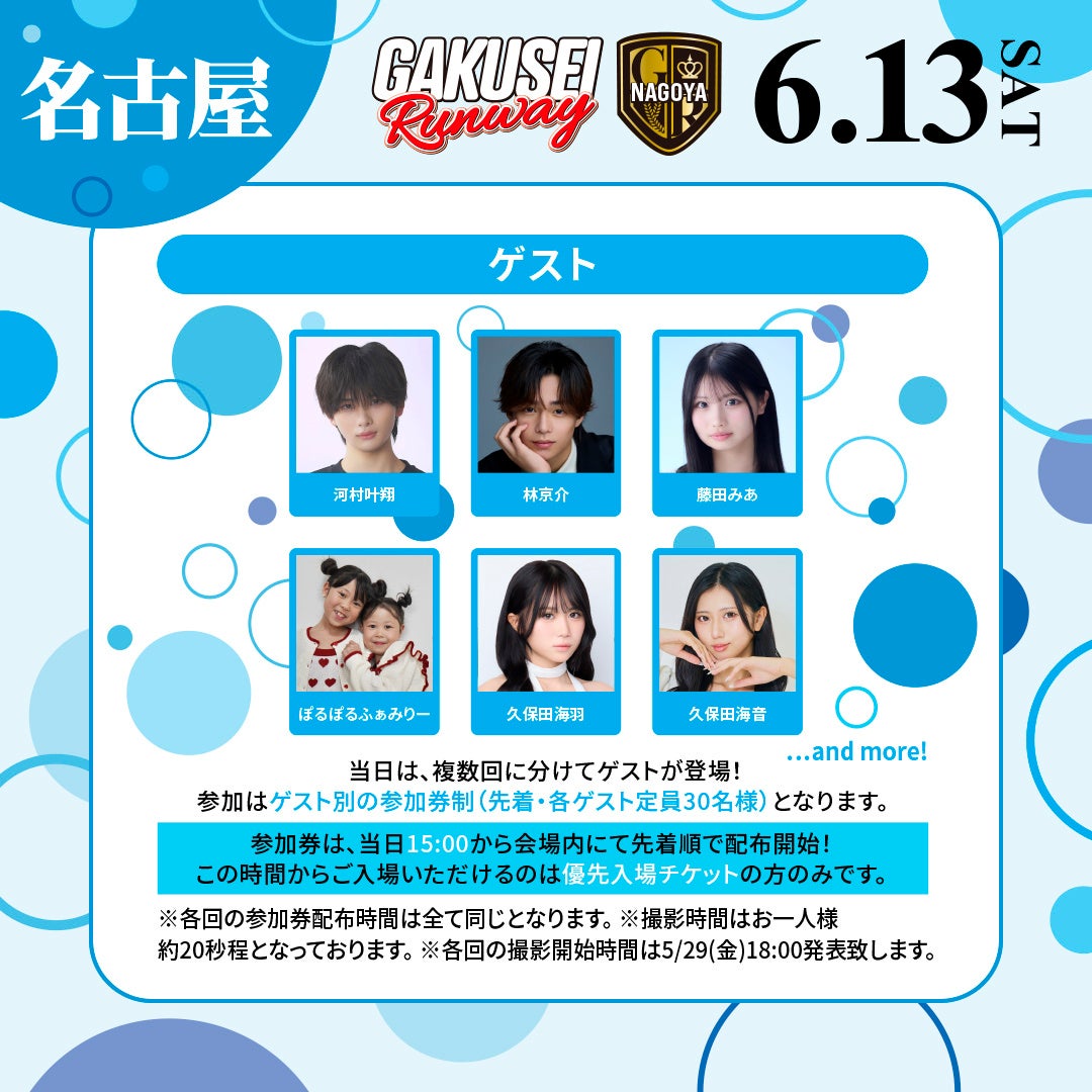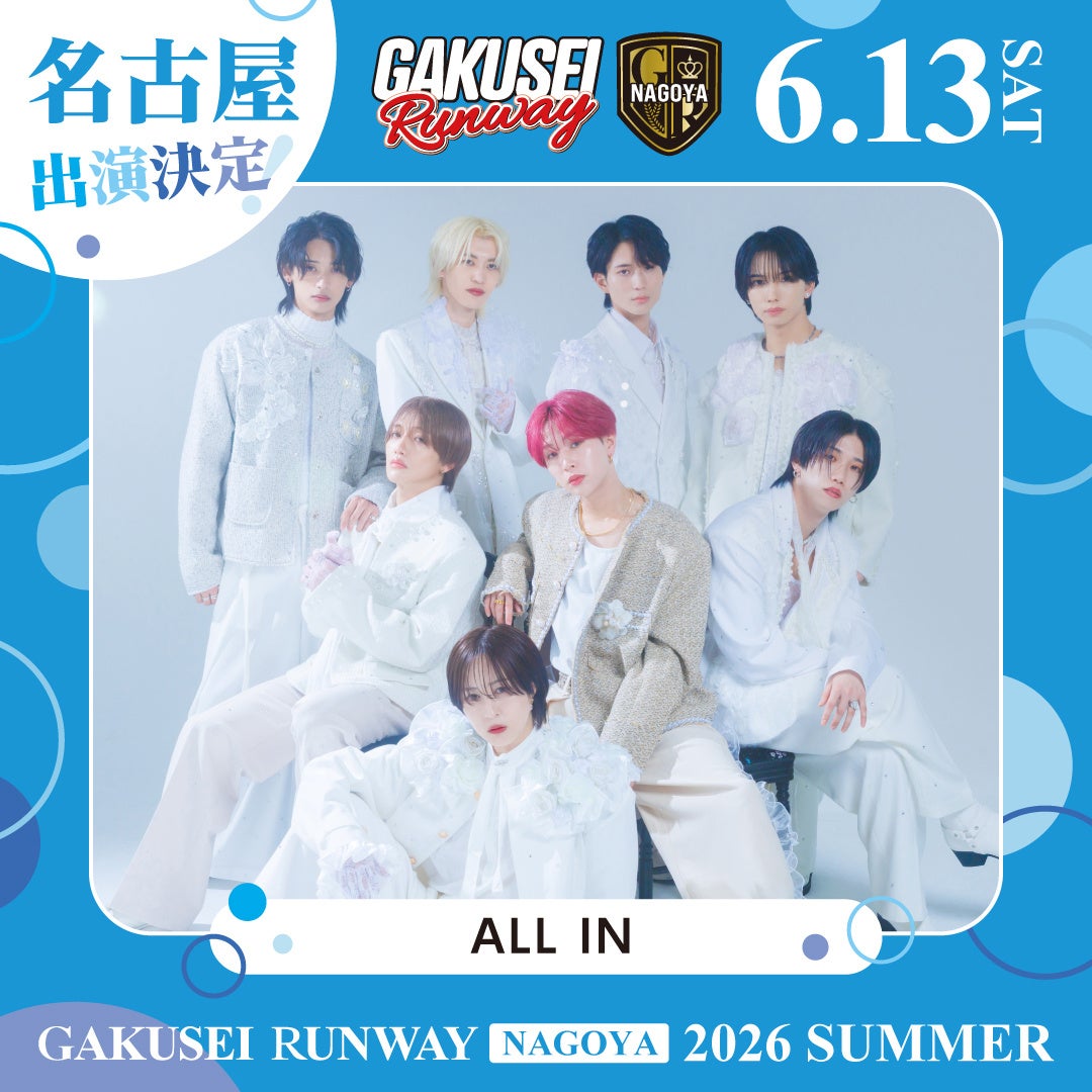 「GAKUSEI RUNWAY 2026 SUMMER in NAGOYA」開催につき、 ゲストの出演を発表しました。 Z世代から絶大な人気を誇るゲストのランウェイや、アーティストライブは学生ランウェイでしか見られないスペシャルなステージでお楽しみいただけます。