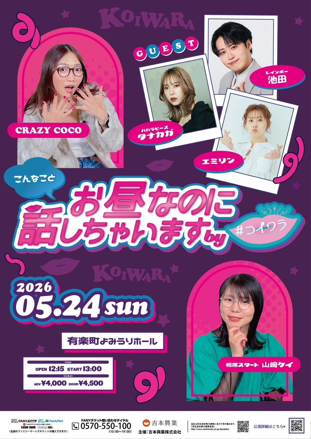 5月24日(日)に有楽町よみうりホールにて開催する、芸人の恋愛観をのぞき見できるYouTubeチャンネル「#コイワラ【芸人×恋愛】」のイベント『お昼なのにこんなこと話しちゃいます by #コイワラ』に、レインボー・池田直人の追加出演が決定しました。