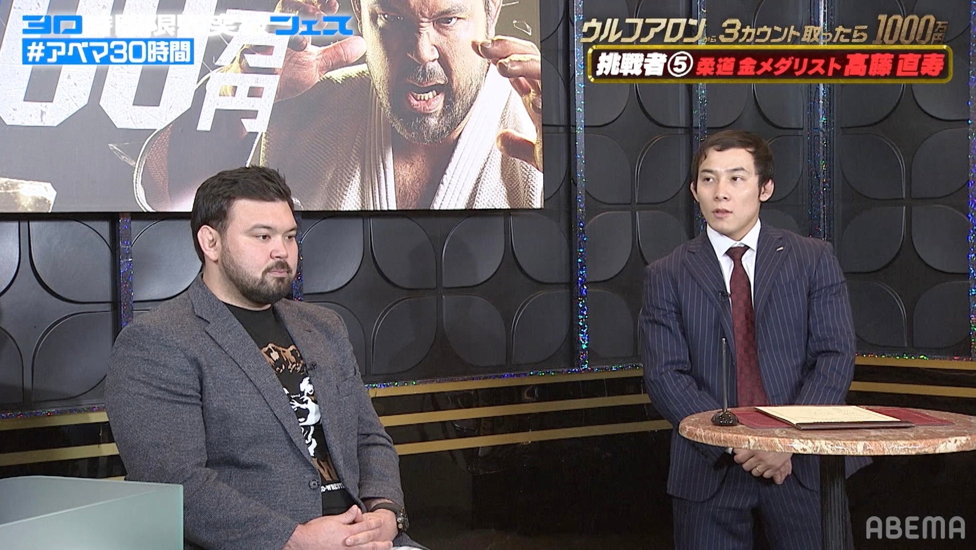 「ABEMA」開局10周年記念の特別番組『30時間限界突破フェス』目玉企画『ウルフアロンから3カウント取ったら1000万円』調印式レポート|ウルフアロンが全勝宣言「1000万円を取られる可能性は0%」