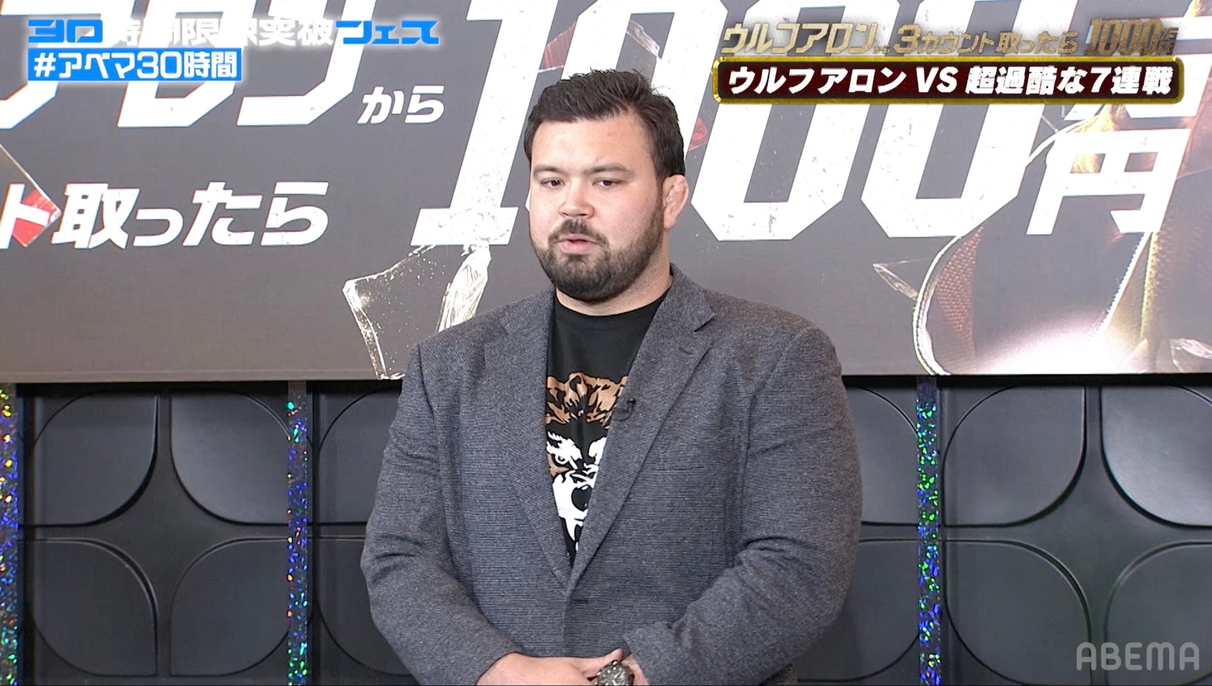 「ABEMA」開局10周年記念の特別番組『30時間限界突破フェス』目玉企画『ウルフアロンから3カウント取ったら1000万円』調印式レポート|ウルフアロンが全勝宣言「1000万円を取られる可能性は0%」