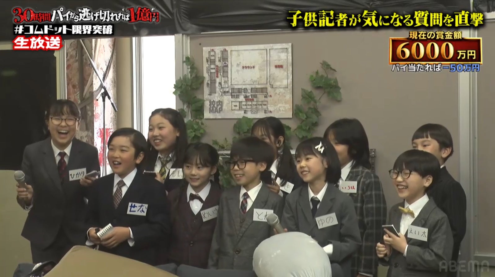 そこへ再び子ども記者たちが現れ、第2回記者会見が開幕。記者から「この体を作るために借金をしたのは本当か」と問われた横川は、「おじさんはいっぱいお金を借りてるの。500万くらいかな」と衝撃の事実を告白。さらに最高月収を「1000万くらい」と明かすも、「(借金は)それでも返さないよ。おじさんは逃げ切ろうと思ってる」と破天荒な宣言を放ち、これにはコムドットも「めちゃくちゃ言ってるよ!」と猛ツッコミ。現場は大きな笑いに包まれました。その後、子ども記者から借金経験を問われたコムドットは、やまととゆうたが「ない」と答える一方で、あむぎりが「パソコンを買うためにひゅうがに借りた」、ひゅうがが「あっちゃん(あむぎり)にお金をちょっと借りている」と、メンバー間の意外な金銭事情を次々と暴露。生放送ならではの赤裸々な告白が続き、視聴者の注目を集め続けています。