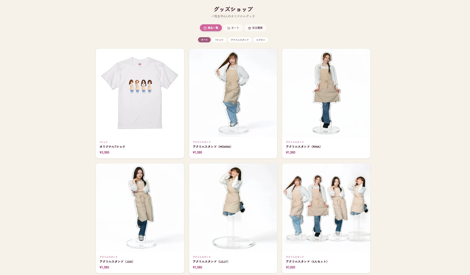 アクリルスタンドをはじめとするオリジナルグッズを、ファンクラブ内で限定販売いたします。
