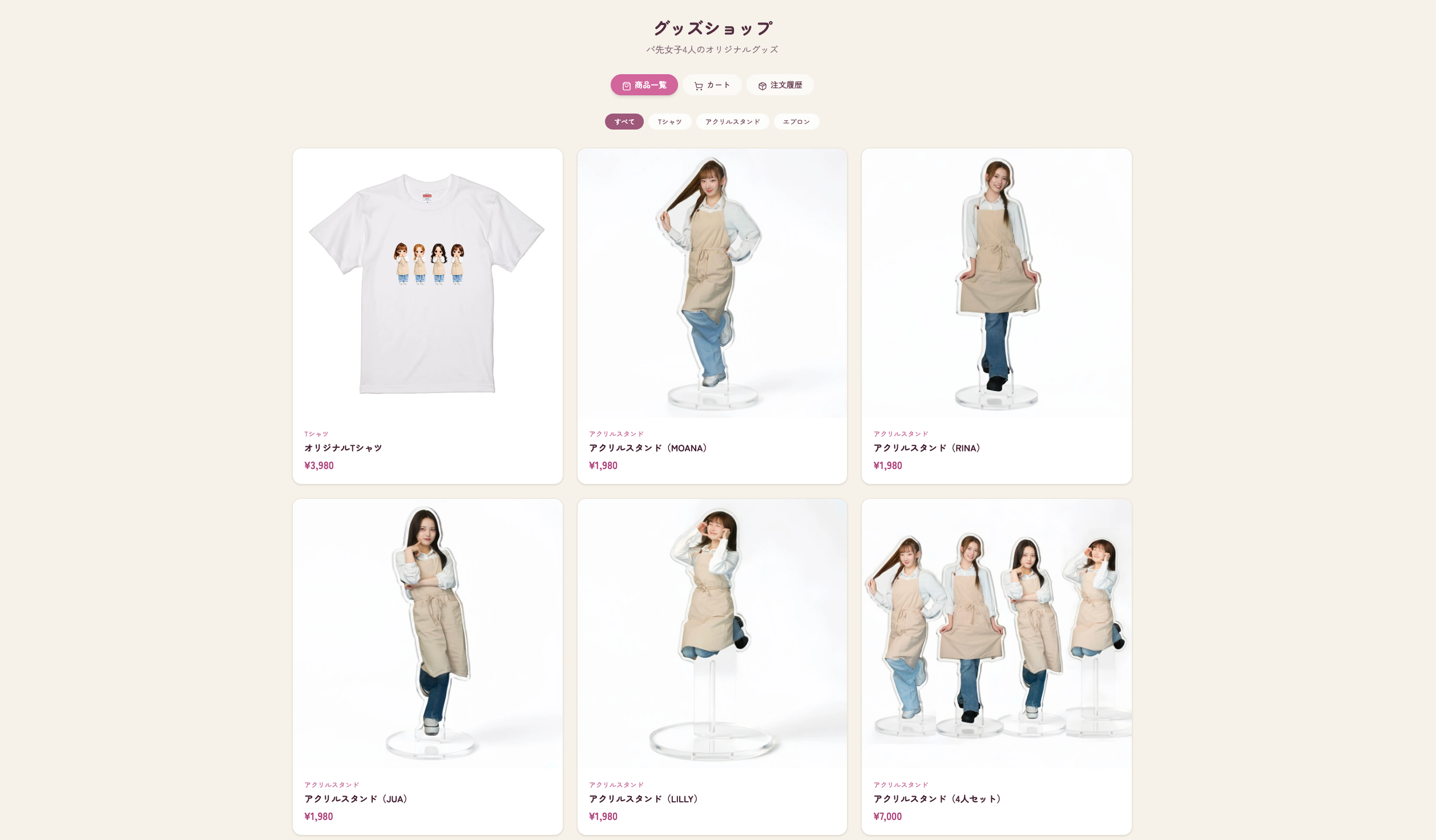 私たちのグッズ👕や撮影の裏側、まかないガチャなどワクワクするコンテンツが沢山あるよ♩