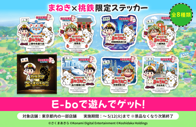株式会社コシダカホールディングス(東京本社:東京都渋谷区、代表取締役社長:腰髙 博)傘下の株式会社コシダカが運営する「カラオケまねきねこ」は、全店導入のエンタメプラットフォーム「E-bo(イーボ)」にて展開中の「桃太郎電鉄 ~昭和 平成 令和も定番!~ for E-bo エンタメボックス」を対象店舗でご利用いただいたお客様へ、限定デザインのステッカーを配布いたします。今回は「東京都限定」の特別企画として、都内店舗をご利用の皆様へ、日常のエンターテインメントさらなるワクワクをお届けします。