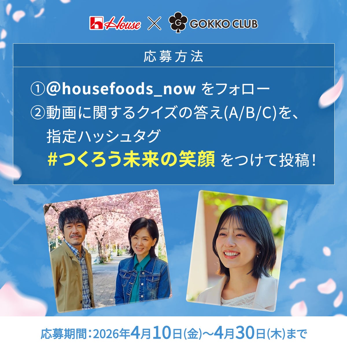 動画内のクイズに回答いただいた方の中から抽選で、ハウス製品を詰め合わせた「新生活応援セット」が当たる!