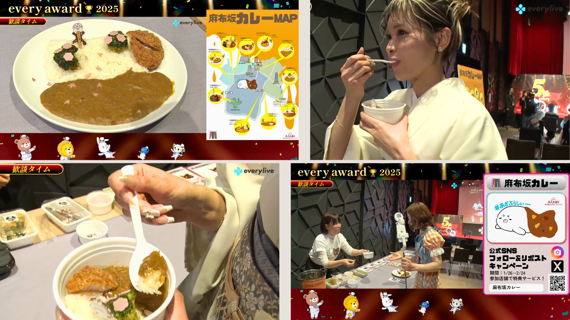 港区麻布地区総合支所 地域事業活性化プロジェクト「麻布坂カレー」ライバー試食PRの様子